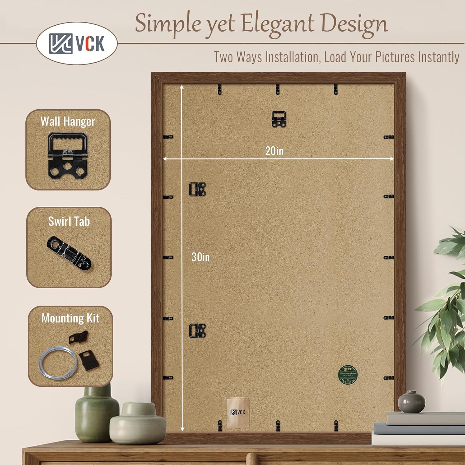 - Raw Elegance: VCK brown wood-grain poster frame. Drawing inspiration from Appalachian ancient forests, perfectly integrates a minimalist sleek design with the wild aesthetics of nature, suiting any decor and color, instantly enhancing the aesthetic of your space