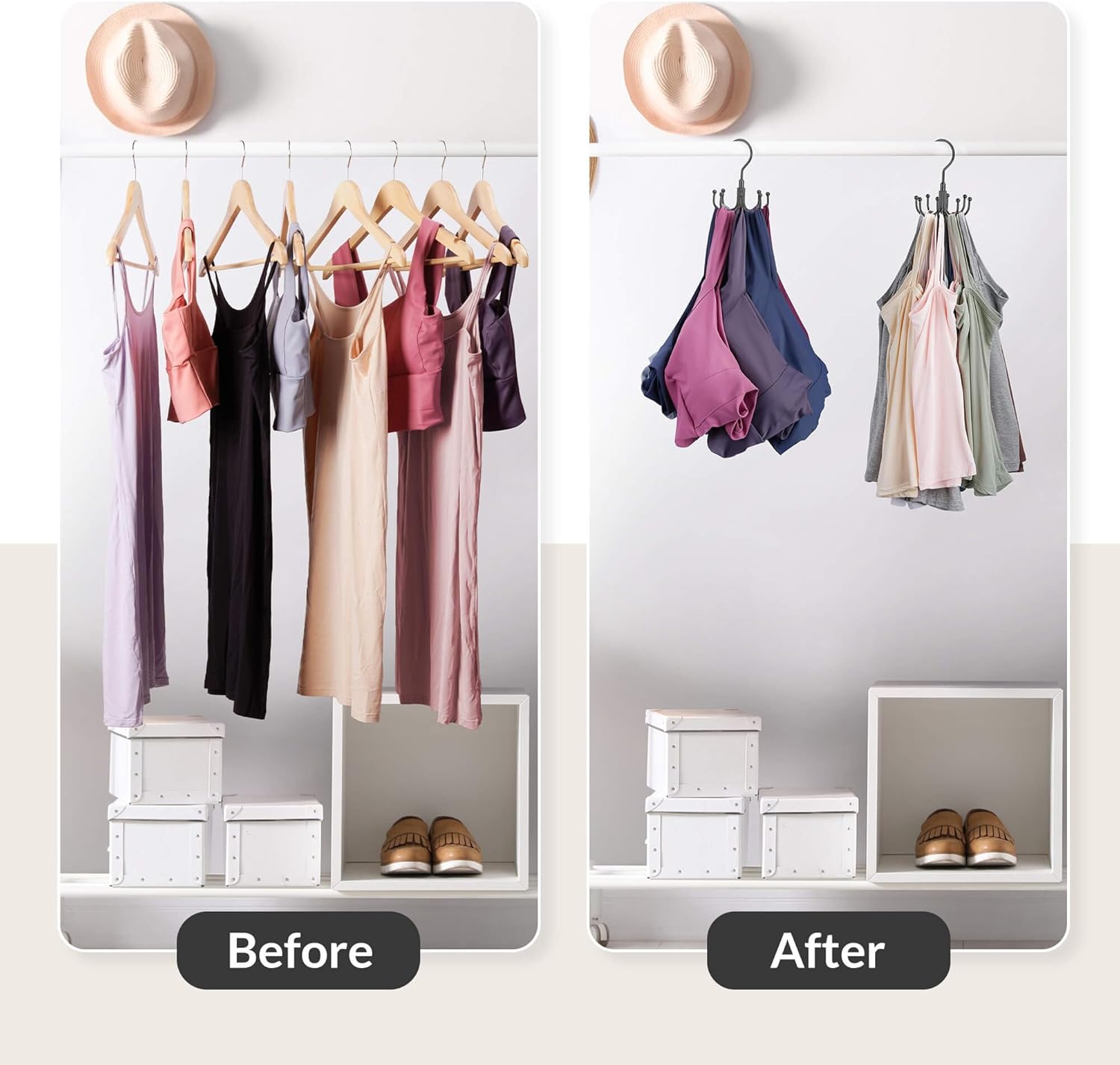 - Space-Saving Efficiency: Save valuable closet space by consolidating your bras and tank tops on this single hanger. Its efficient design keeps your garments neatly organized and your closet clutter-free.