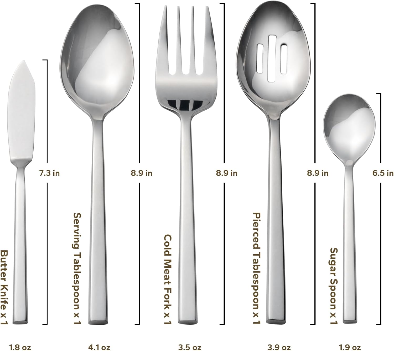 • Included Components : 12 dinner knives, 12 dinner forks, 12 dinner spoons, 12 salad forks, 12 teaspoons, utensil-serving set 12 dinner knives, 12 dinner forks, 12 dinner spoons, 12 salad forks, 12 teaspoons, utensil-serving set