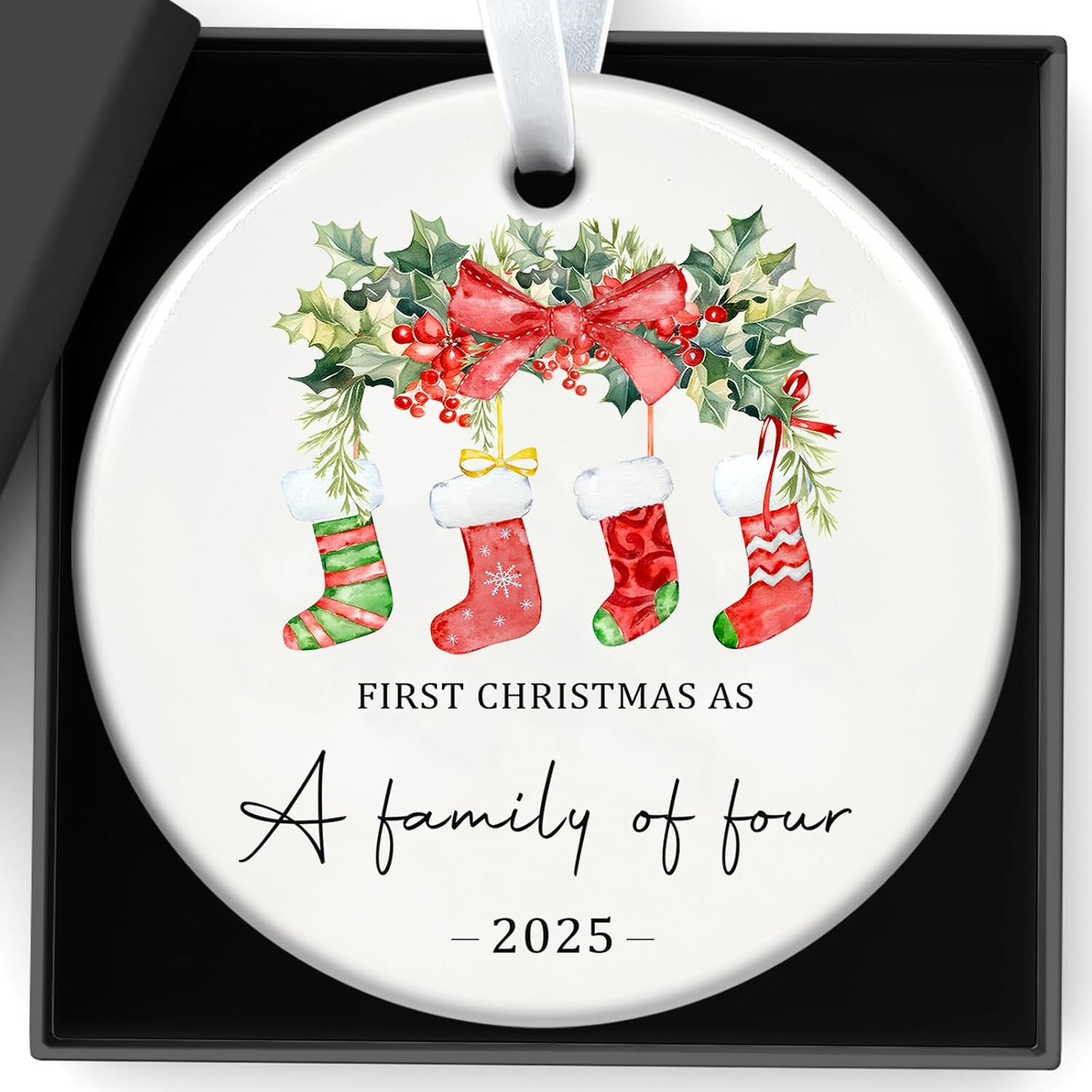 - 【First Christmas As a Family of Four 2025 Gift】Our First Christmas As a Family Of four 2025 ornament is the perfect gift for new parents. The detailed design and meaningful symbols make it a cherished keepsake that celebrates the joy of welcoming a new baby. Ideal for personalized family Christmas ornaments 2025, it marks this special milestone with warmth and love.