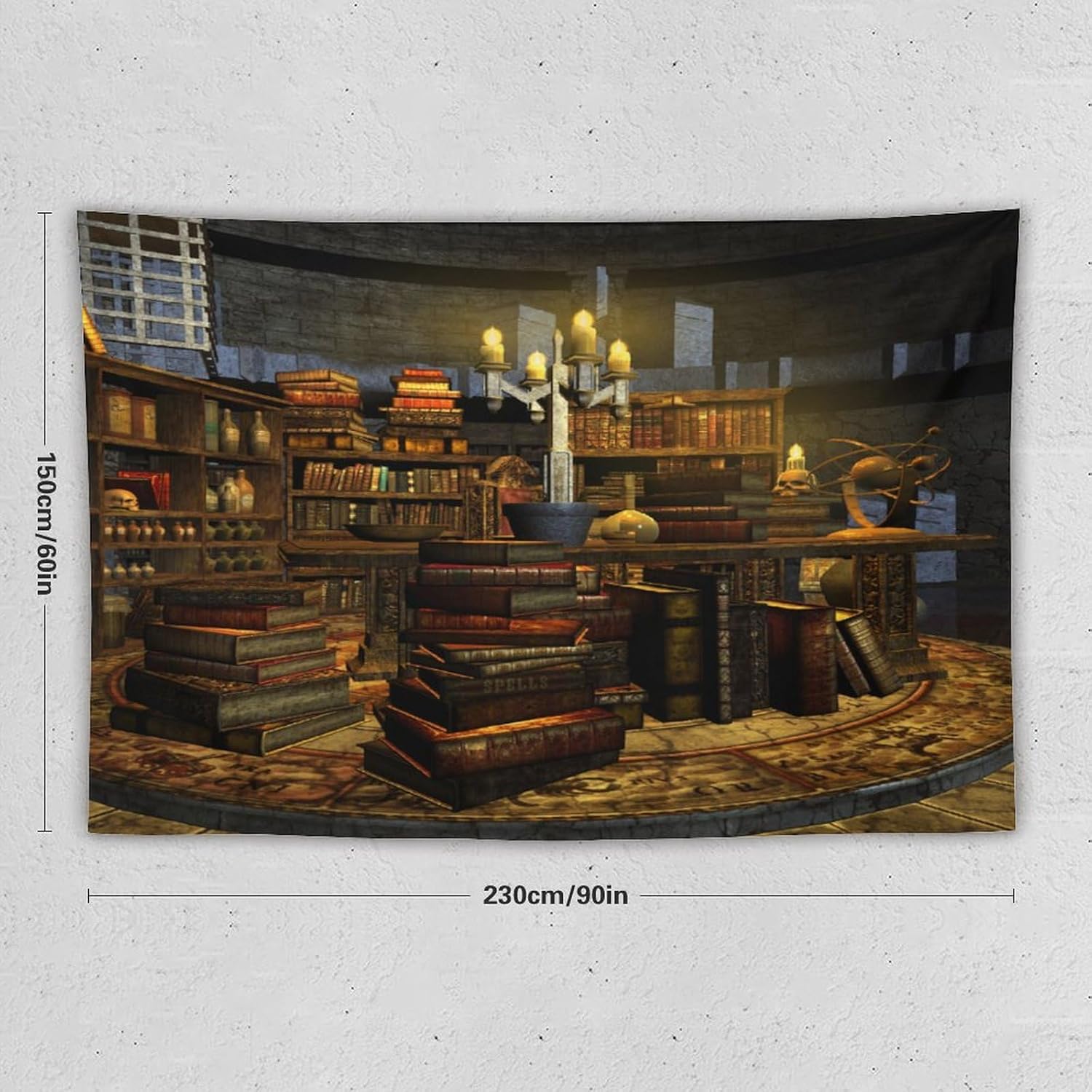 Kurtect Library Tapestry,Vintage Medieval Bookshelf Wooden Bookcase Antique Magic Art Tapestries for Party Beach Picnic Blankets Tablecloths Living Room Wall Deocr, 60x90 in