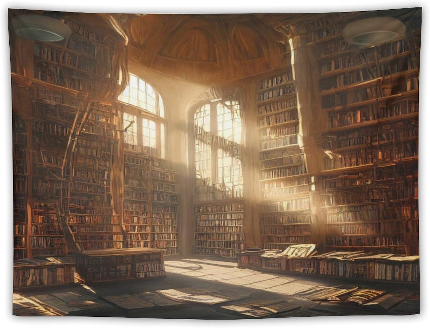 Kurtect Retro Bookshelf Tapestry,Medieval Mid Century Library Building Pattern Print Tapestries for Party Beach Picnic Blankets Tablecloths Living Room Wall Deocr, 30x40 in