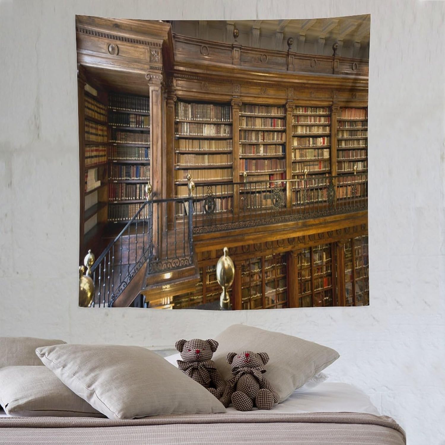 Kurtect Library Tapestry,Vintage Medieval Antique Bookshelf Bookcase Pattern Print Tapestries for Party Beach Picnic Blankets Tablecloths Living Room Wall Deocr, 60x60 in