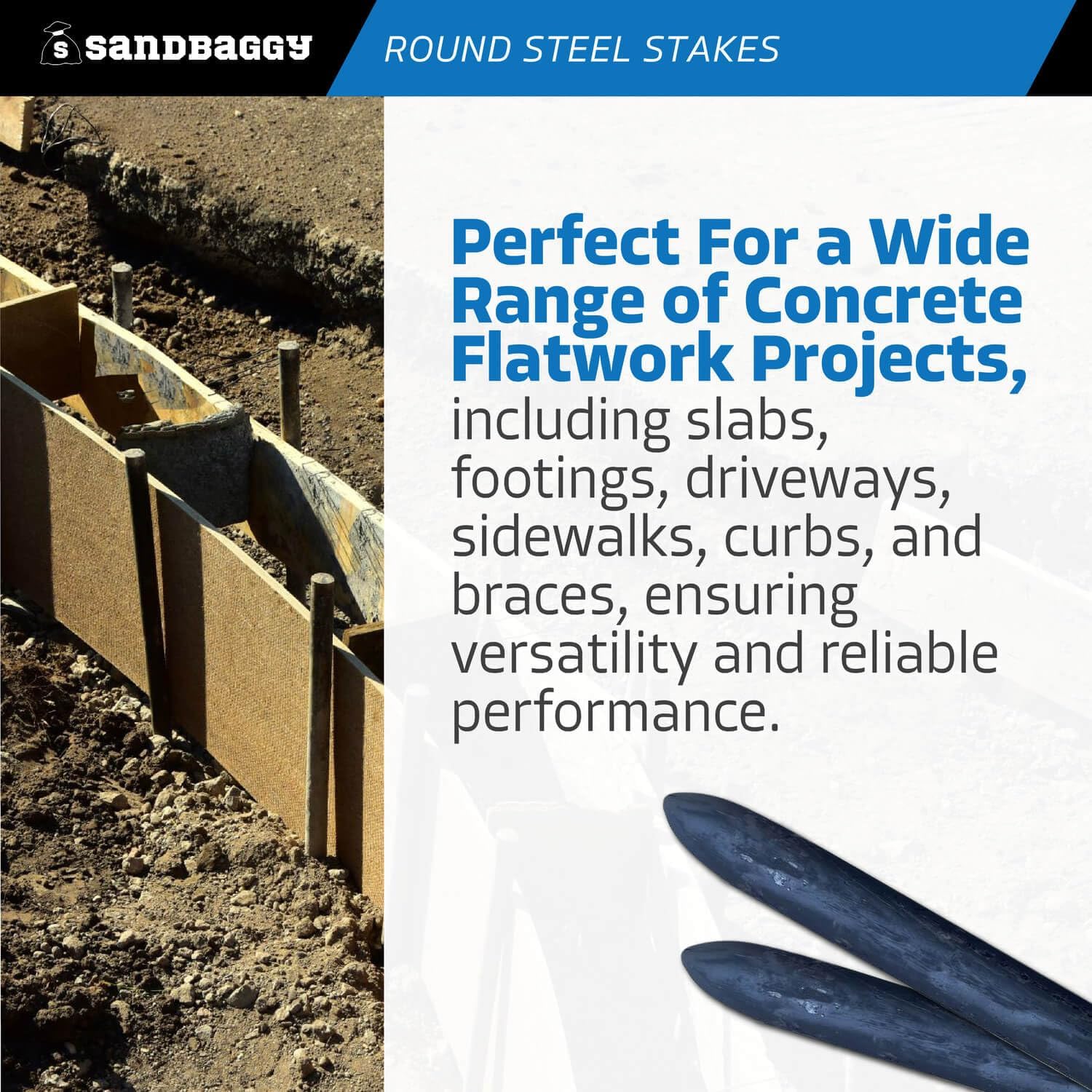 Sandbaggy Round Steel Concrete Form Stakes with Nail Holes - Rust Resistant Coating - Removable, Reusable (80, 3/4 in X 12 in)