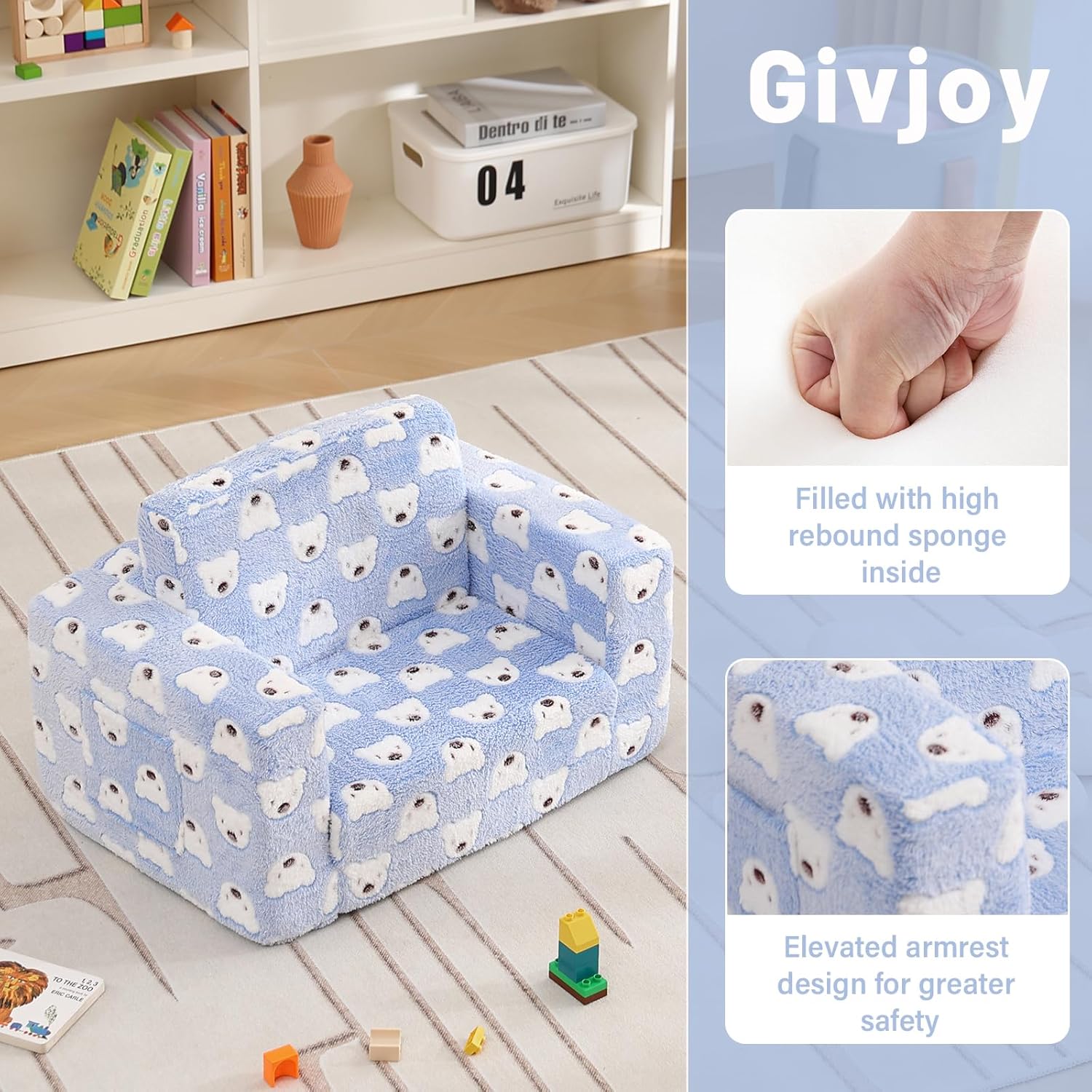 - 【Kids Sofa Requires No Assembly】The 2-in-1 toddler sofa couch is in vacuum packing. Open the Kids Couch packaging and you will get a soft plush Sofa for your kids. Please allow 4-5 days for the kids sofa couch to take on its original shape or use a clothing steamer to quickly restore its thickness and remove creases.