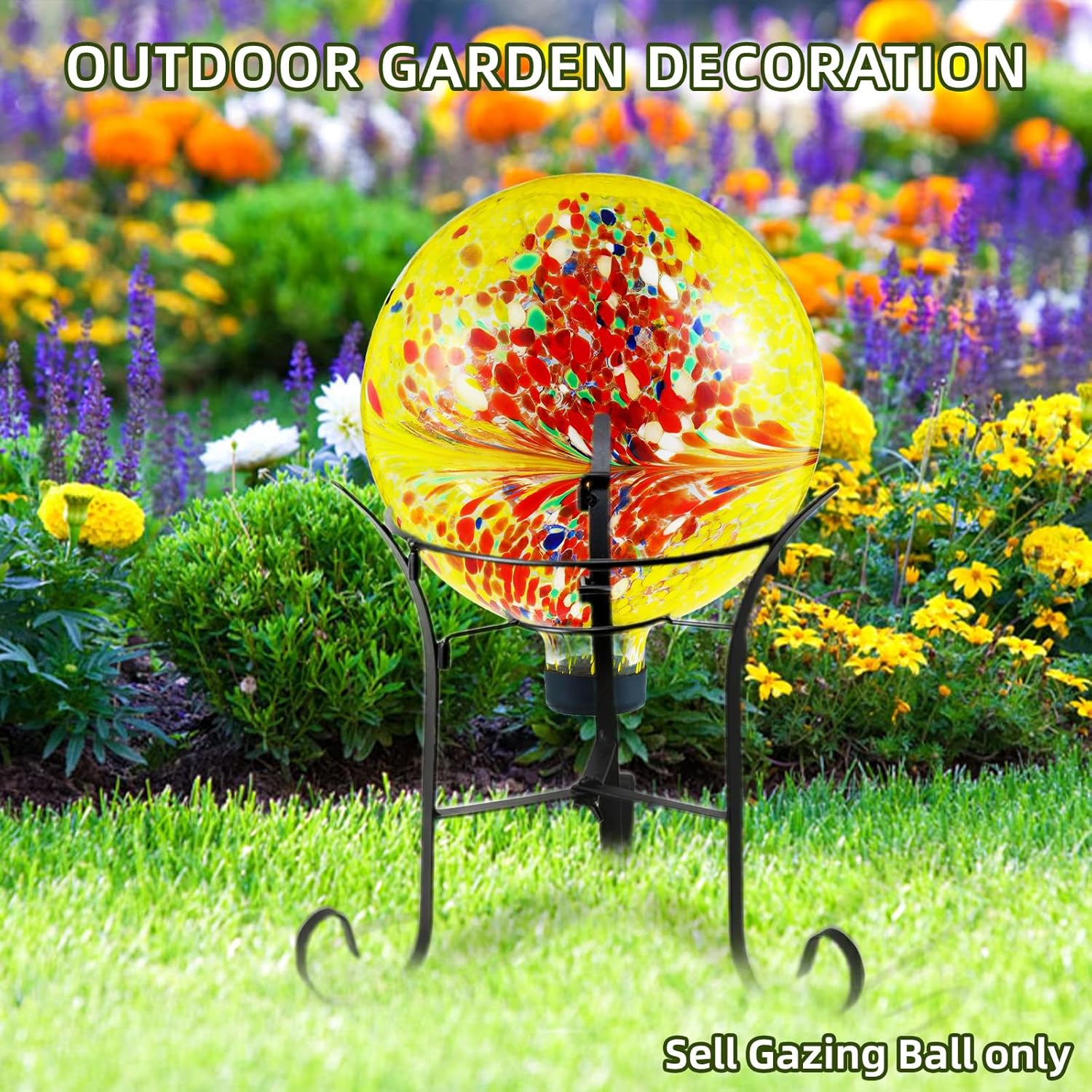 - VERSATILE & STAND-COMPATIBLE. Measuring 10 inches in diameter and 11.5 inches tall, this decorative gazing ball is designed to fit most standard stands (stand not included). A protective rubber cap at the base prevents damage from bumps and vibrations, making it easy to display securely in your garden