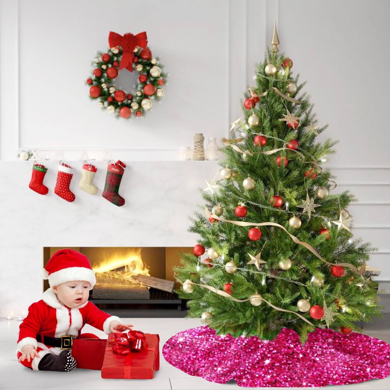 - ❄️【Sturdy Material - Hot Pink Tree Skirt】Our sequin Chritmas tree skirt is made of premium 5mm sequin fabric and thick velvet material, which can show bright color at any angle. Different from the traditional glitter trees skirt, this Christmas tree mat won't fall off sequins, more elegant and shiny, adding festive fun to your home.