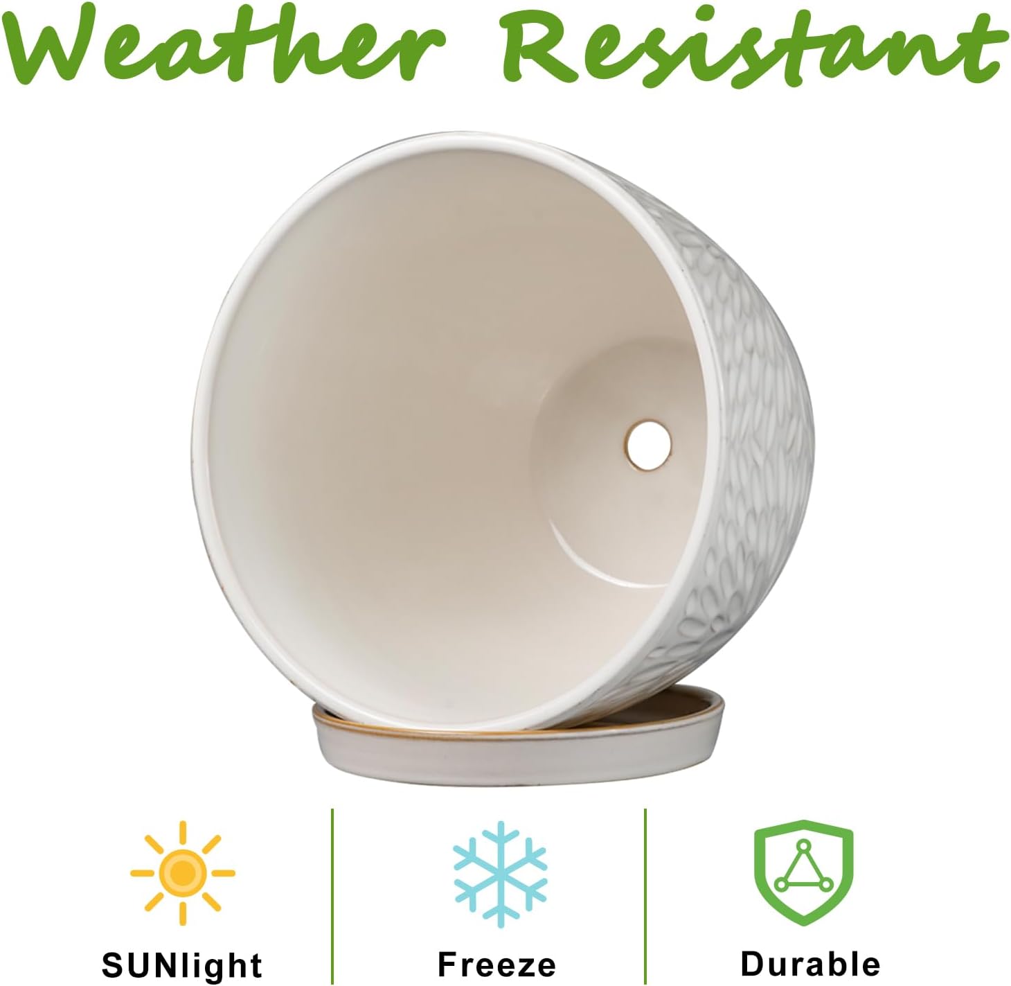 - Ideal Size: Each ceramic flower pot is 8.5 D x 7.5 H, which can provide enough space for your plants to thrive. One package includes white planter, ceramic tray and mesh