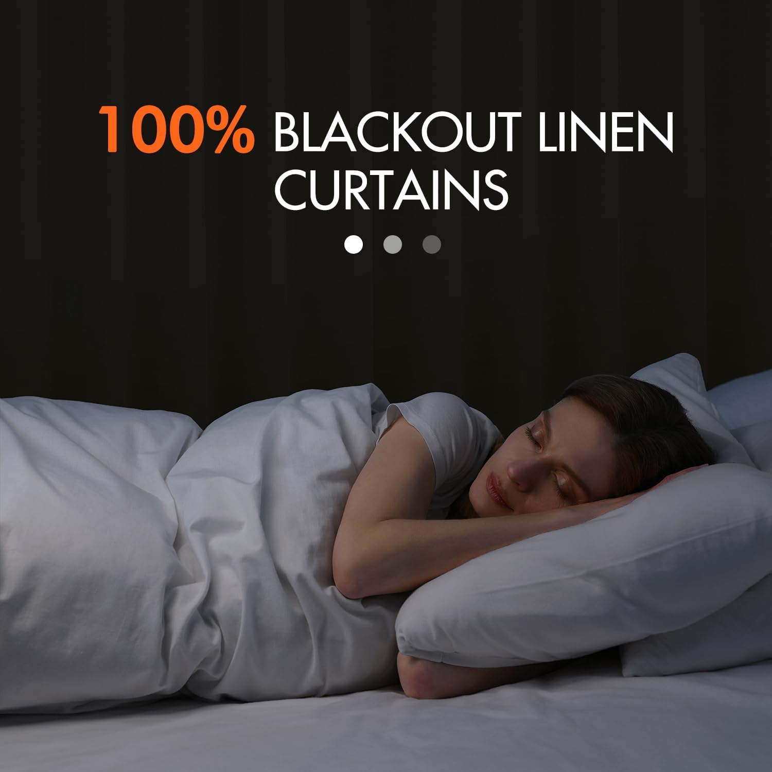 - INNOVATED MATERIAL: Crafted from premium thick linen-like fabric with a substantial weight of 350 GSM, these curtains surpass standard blackout options in thickness, luxurious texture, and functionality. The advanced four-layer coating ensures 100% light blocking, insulation against heat and cold, and effective noise reduction. The vintage burlap texture adds timeless charm and highlights their high-quality feel. Energy-efficient and durable, they provide privacy and a cozy atmosphere year-round