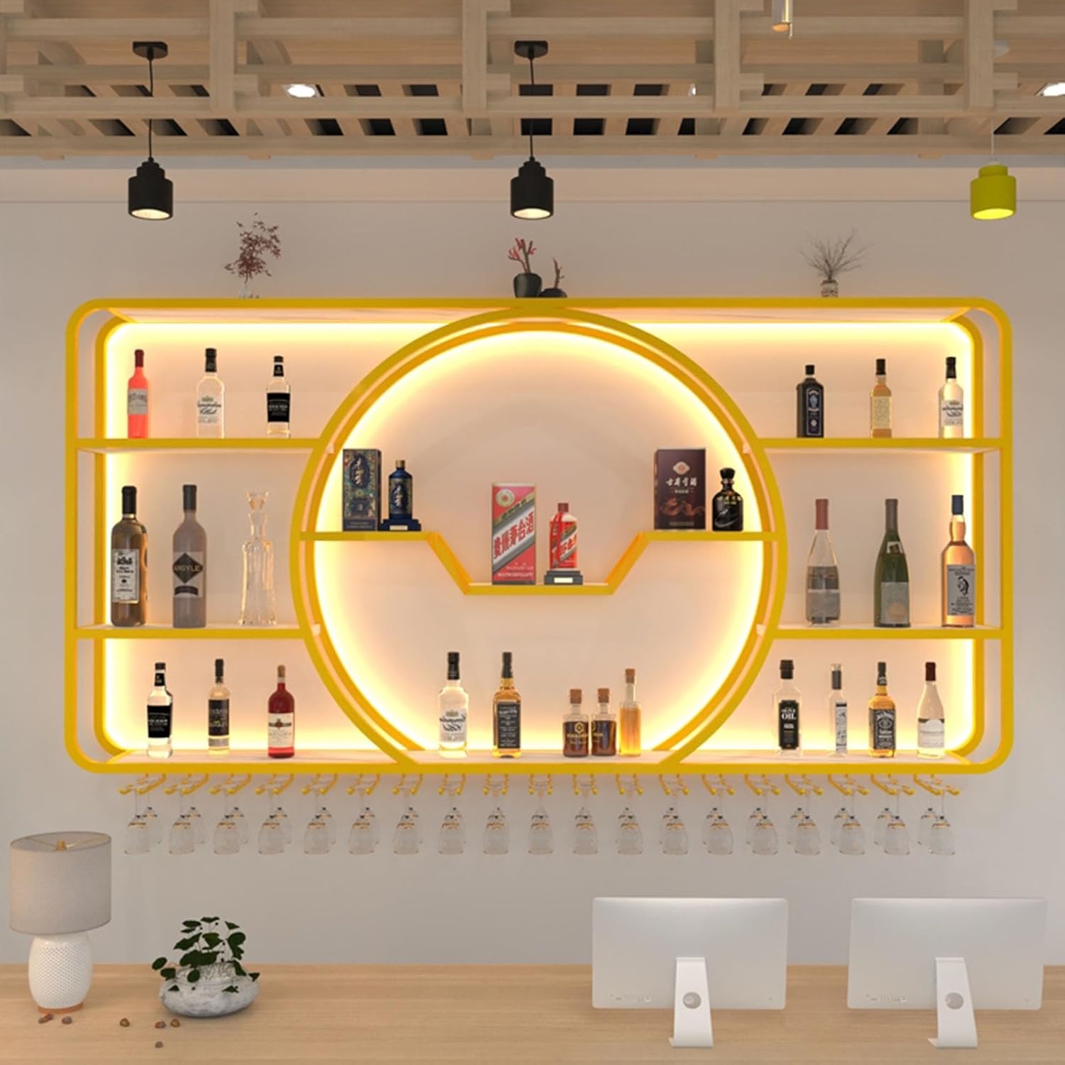 - Broad Application: This wall-mounted wine rack can serve various purposes—kitchen storage, living room display, or wine rack. Our bar wall shelves is perfect for homes, bars, cafes, hotels, restaurants, offices, and high-end clubs.