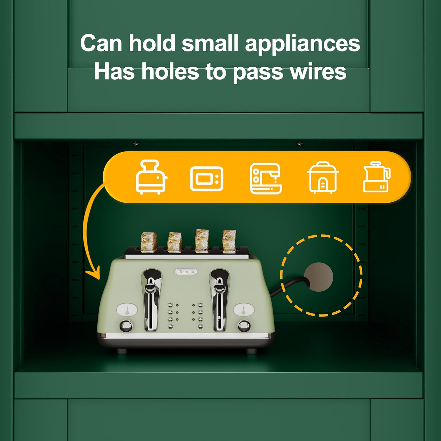 - 🛒【Safe and Sturdy】: The storage cabinet is made of high-quality cold-rolled steel. Pantry cabinet adopts a high-quality electrostatic powder layer, which is easy to clean, scratch resistant and sturdy and durable.The back panel has screws that can be fixed to the wall to prevent the cabinet from tipping over.
