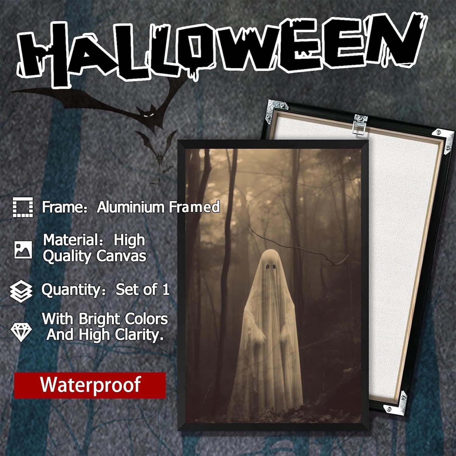 Ghost Forest Spooky Print Poster The Gothic Room Decor Creepy Picture Posters Dark Academia Aesthetic Family Prints Canvas Wall Art Home Apartment Decorations 12X16inch Aluminum Framed