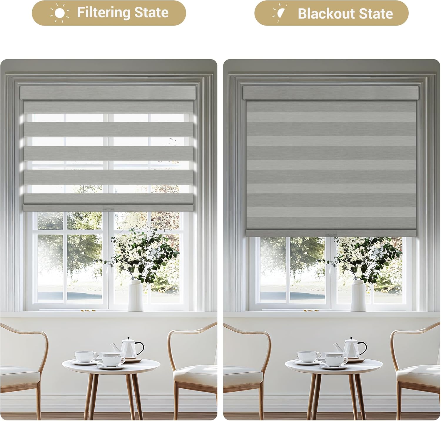 Cordless Zebra Blinds for Windows, Blackout Interior Blinds,Easy to Install,UV Protection,for Offices and Home,Custom Roller Shades, Mousse Light Grey,34" W x 80" H
