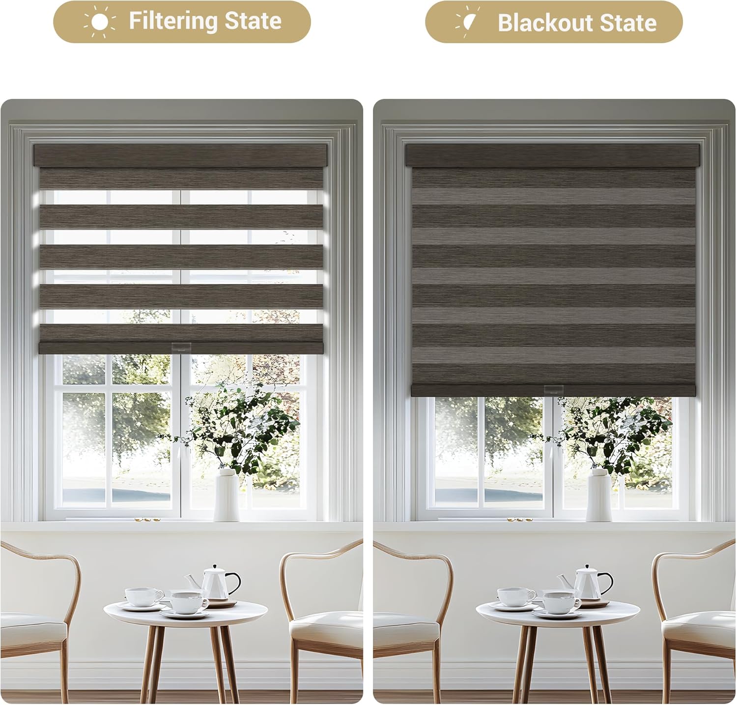Cordless Zebra Blinds for Windows, Blackout Interior Blinds,Easy to Install,UV Protection,for Offices and Home,Custom Roller Shades, Mousse Dark Bown,87" W x 56" H