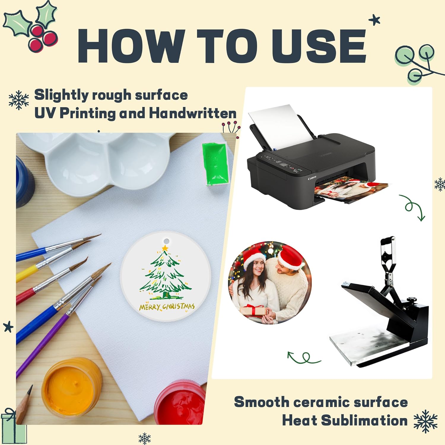 - Festive Indoor Decor: Add cheer to 2025 with these sublimation ceramic ornament blanks. Specially designed fun pendants will help you celebrate the festive season and say goodbye to 2025 in a unique way. Bring festive joy and memories to your home with these unique decorations
