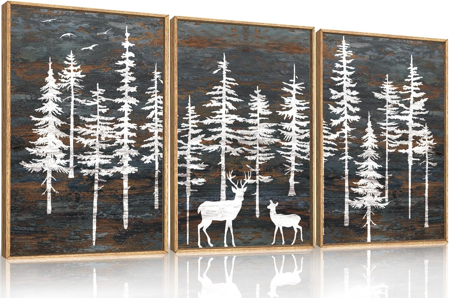 - 【White Forest Wall Art】This forest animal decor art set is a favored selection among individuals seeking to augment the aesthetic charm of their living quarters. The piece showcases a monochrome color scheme that evokes a jungle vibe against a wooden backdrop, culminating in a harmoniously balanced and deeply moving visual theme. Regardless of whether you opt to display this artwork in your lounge, sleeping quarters, or workplace, its composition and hues will contribute to a tranquil and visually gratifying environment.