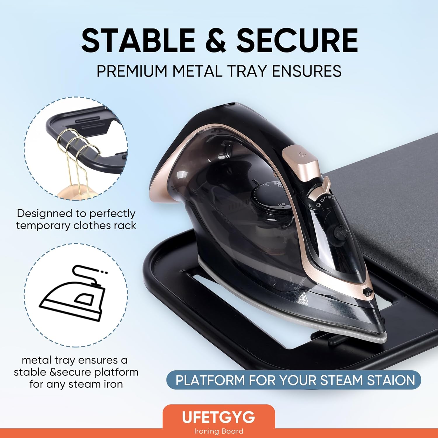 - Large Ironing Surface: With a generous ironing surface area of 43x13 inches, our ironing board provides ample space for ironing various clothing items, making the task effortless and efficient