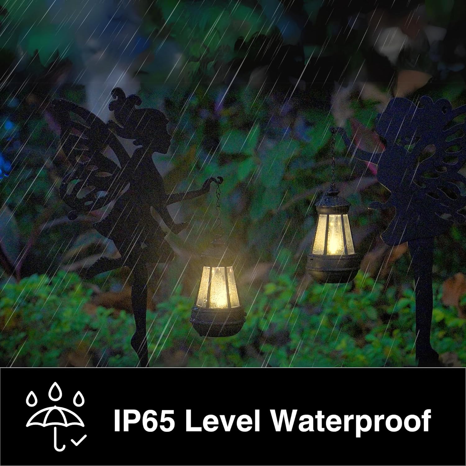 - 【 Tall Metal Solar Stakes 】Differing from other Fairy Statutes Solar lights for decoration, these angel figurines lights offer much taller height as 39 inch. The fairy garden kit comprises two straight poles with screws on both ends and one pole with a stake.