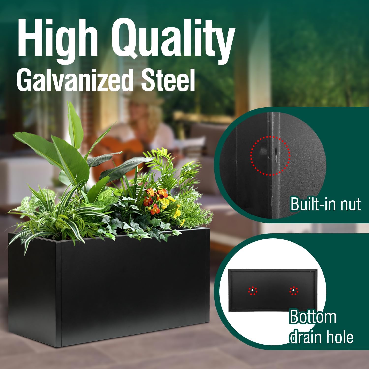 - [ Black Rectangular Planter] Galvanized planter box is made of galvanized steel with black powder coating. Galvanized Steel Planter is wear-resistant, corrosion-resistant and long lifetime.