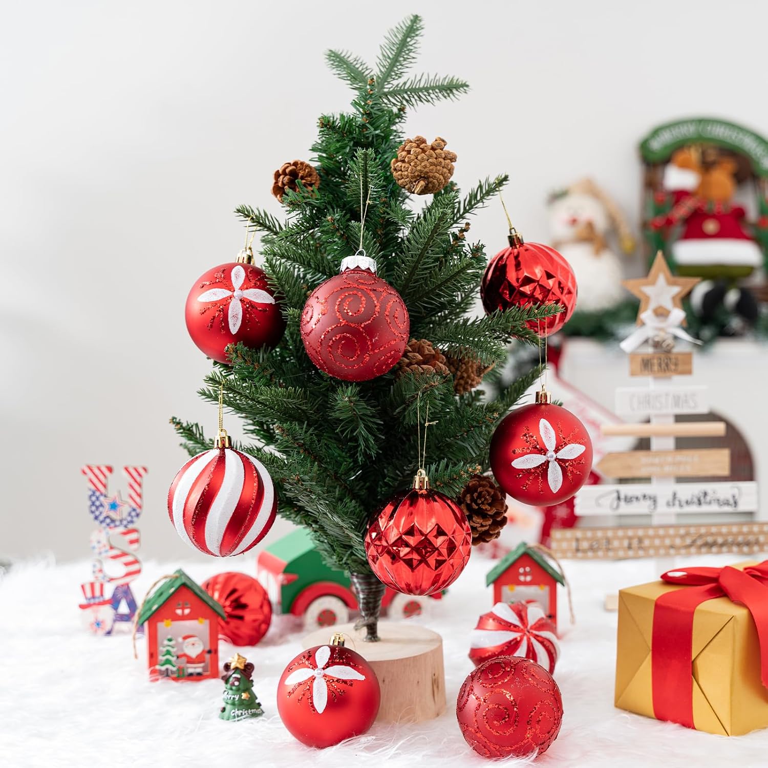 - 【EASY TO HANG】 Each christmas decoration ball and other decorations come with a removable hook with string, you can easily hang it up and add your favorite accessories to make your christmas tree more beautiful