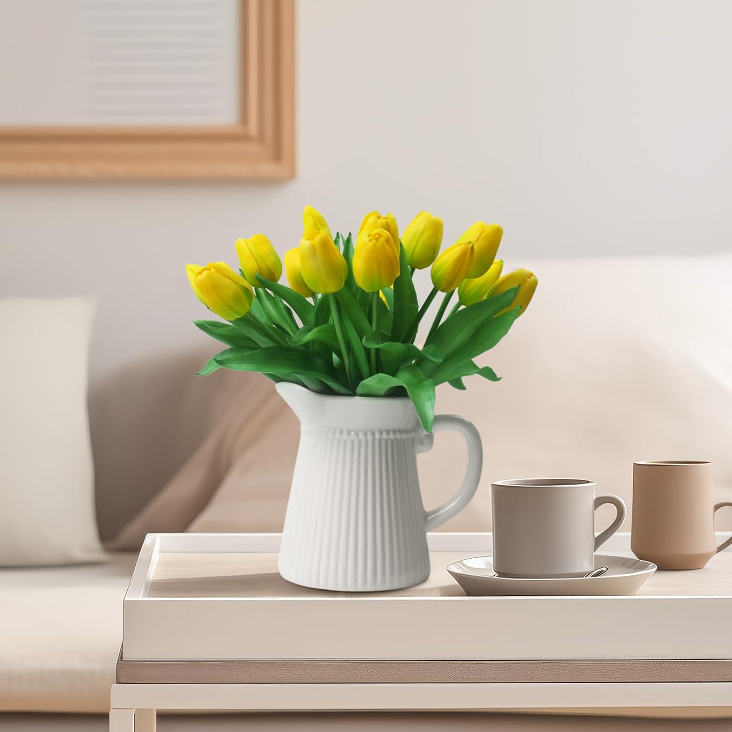 - [No season restrictions]: Artificial tulips that look real have the beauty of real flowers without maintenance or season restrictions. They are a practical and versatile decorative option that, in addition to enhancing your living space, make creative gifts for friends and family.