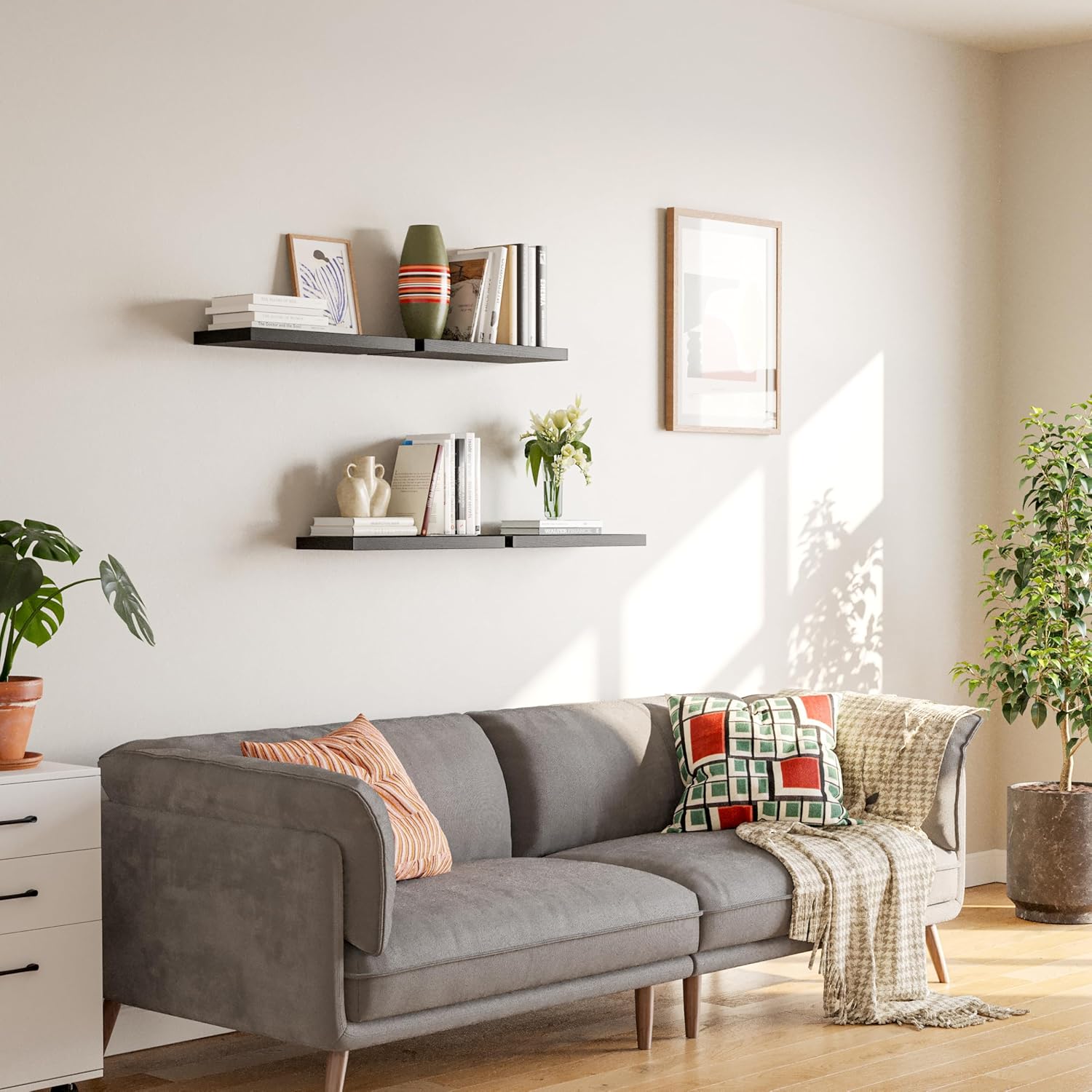 - Space-saving Solution--These wall-mounted shelves are a great way to maximize your storage space. Whether you need extra storage in the bedroom, bathroom, living room, or kitchen, these shelves are the perfect solution.