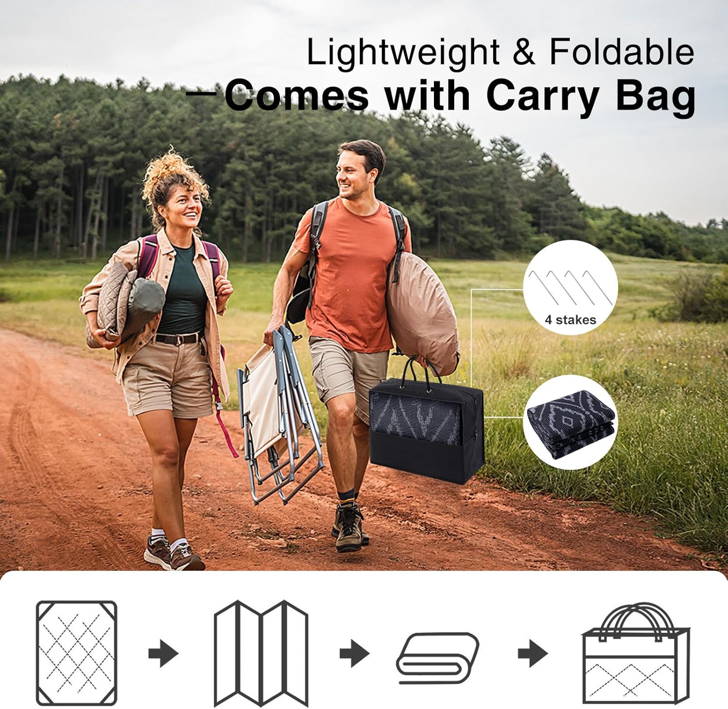 - Lightweight & Portable: These foldable, lightweight outdoor rugs are incredibly easy to transport. Take them to picnics, lawn parties, or camping trips without hassle, ensuring comfort and style wherever you go.