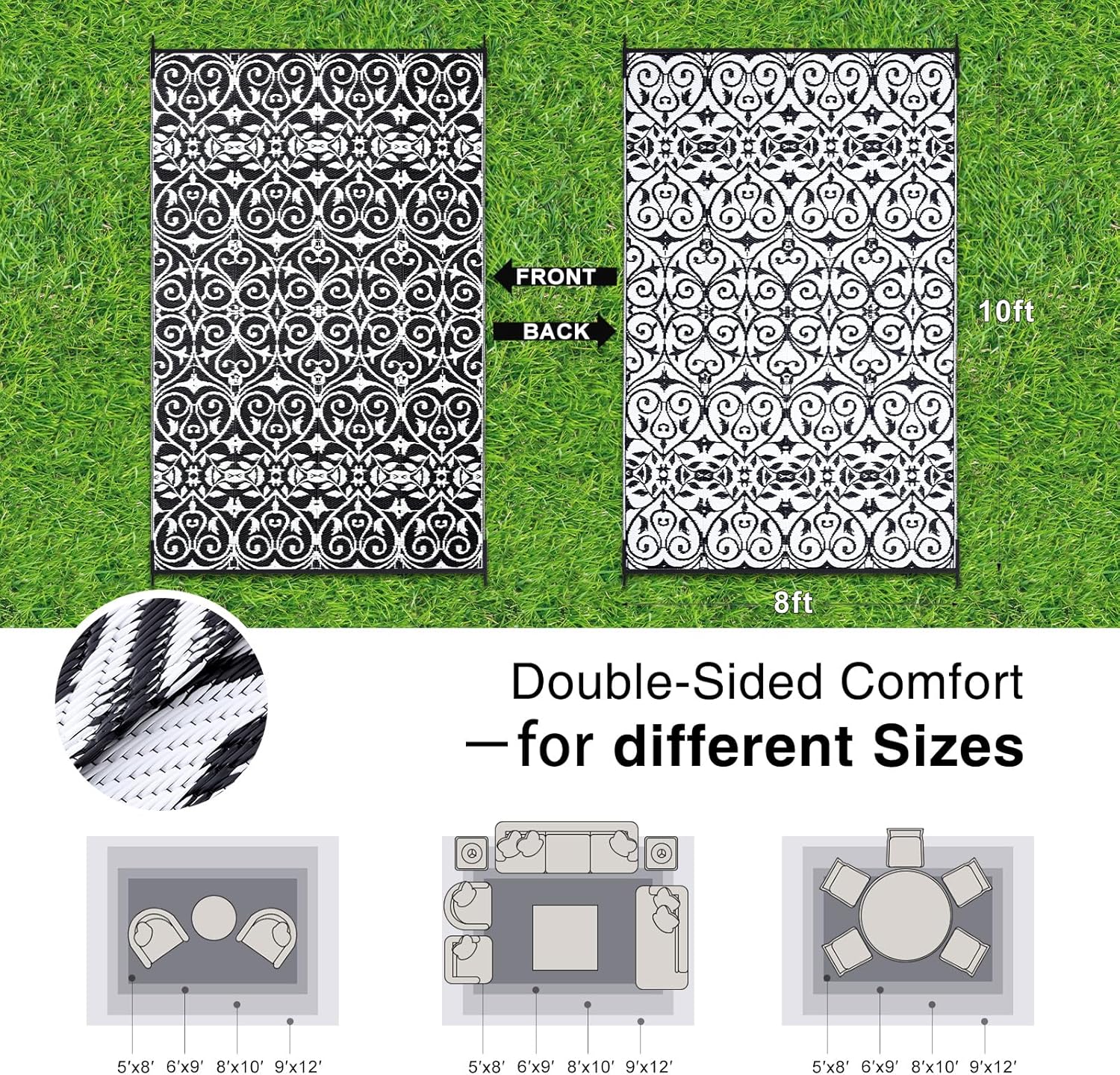 - Lightweight & Portable: Ultra-lightweight and foldable, this outdoor rug is a breeze to carry and store. Take it to picnics, beach outings, or camping trips with ease. Perfect for casual outdoor gatherings, it combines practicality with effortless portability.