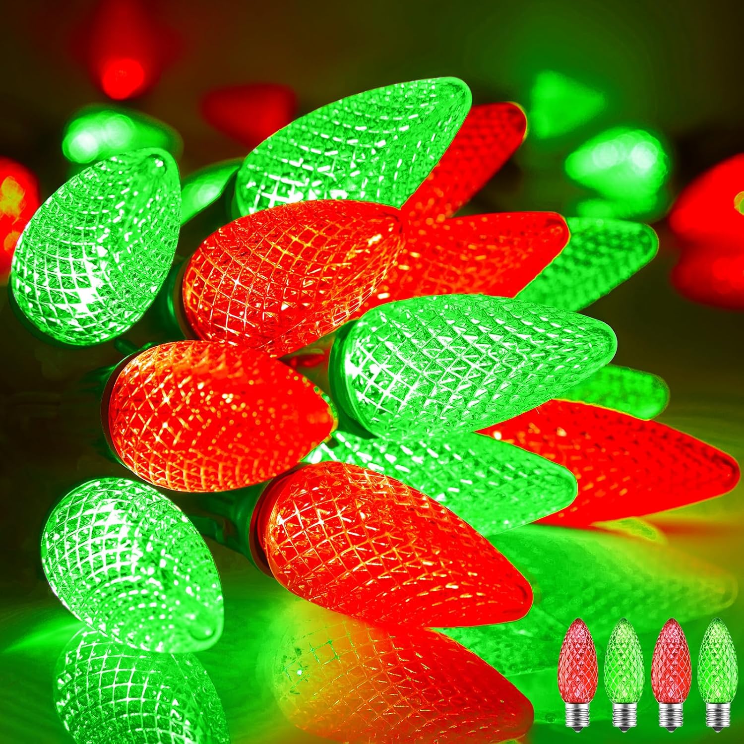 - Super Bright Vivid Lighting and Rectified: These commercial C9 string lights come with 100 led strawberry shatterproof c9 bulbs. Each c9 bulb with built-in high brightness SMD LED light bar and highly water sealing husk.the rectifier equipped inside the bulb base for preventing strobe lighting and Bring you better lighting effects, adding holiday cheer and warm atmosphere