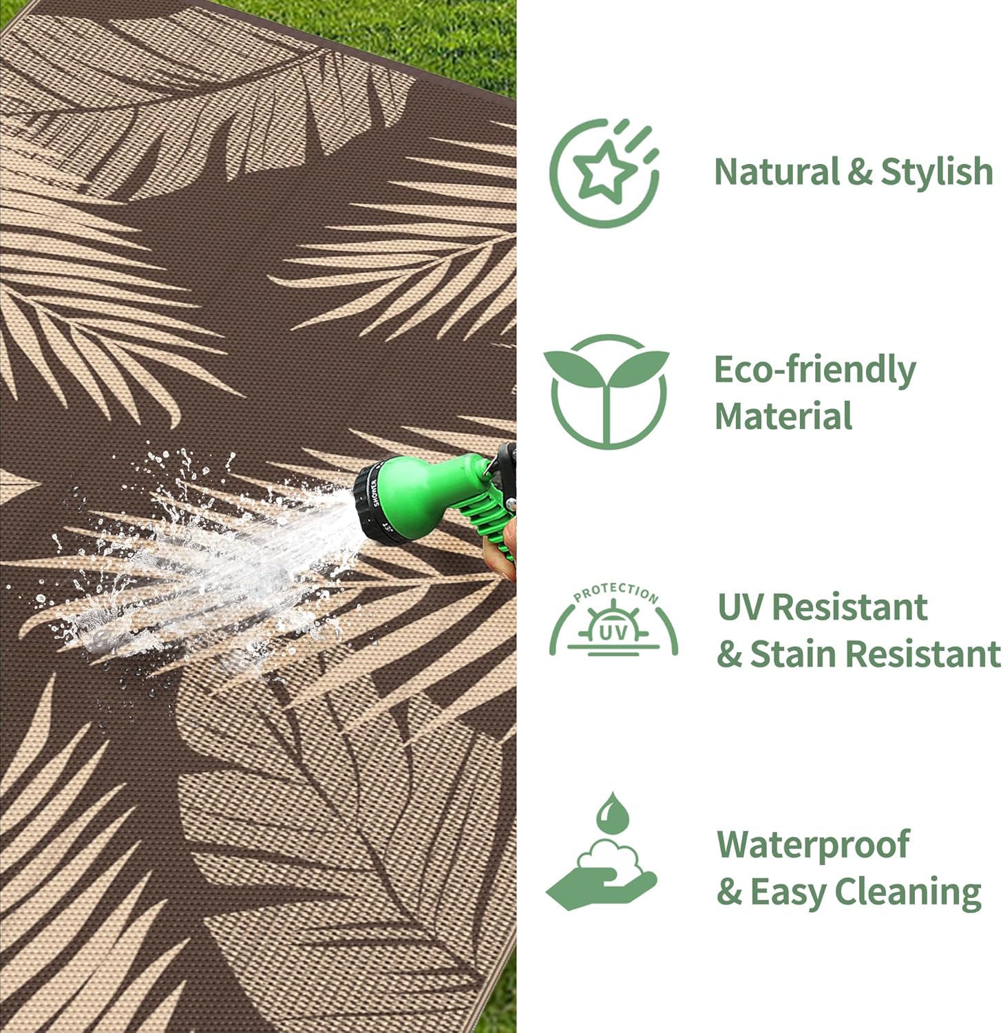 • Waterproof & Easy To Clean: Our indoor and outdoor rugs are waterproof, stain resistant, non-slip, easy to clean and well-breathable. As an outdoor patio rug or picnic mat, you don't have to worry about drink spills, food stains, sand or dirt, just rinse with water or wipe with a damp cloth. Plus, the breathable material allows it to air dry in minutes. You can enjoy your exclusive leisure time with your family or friends outdoors or indoors without any worries