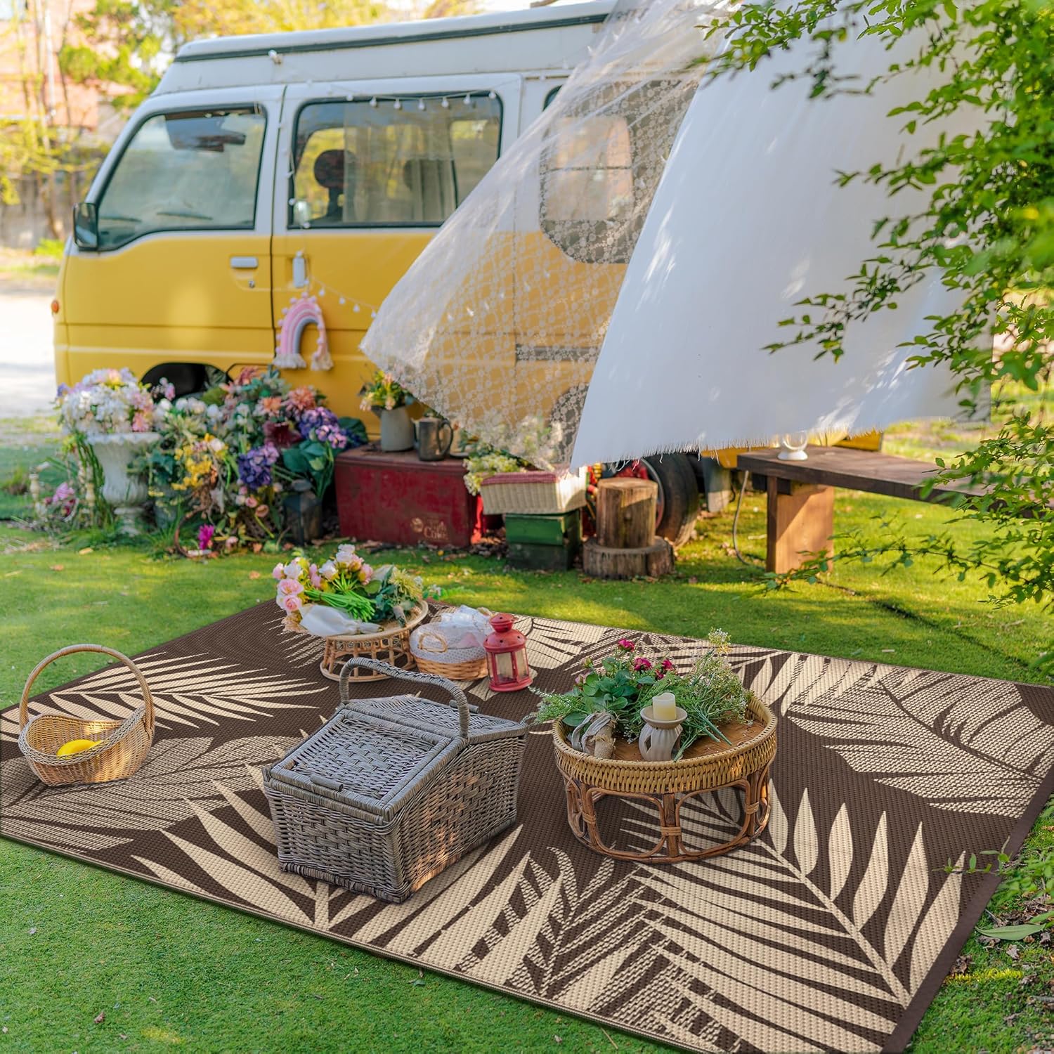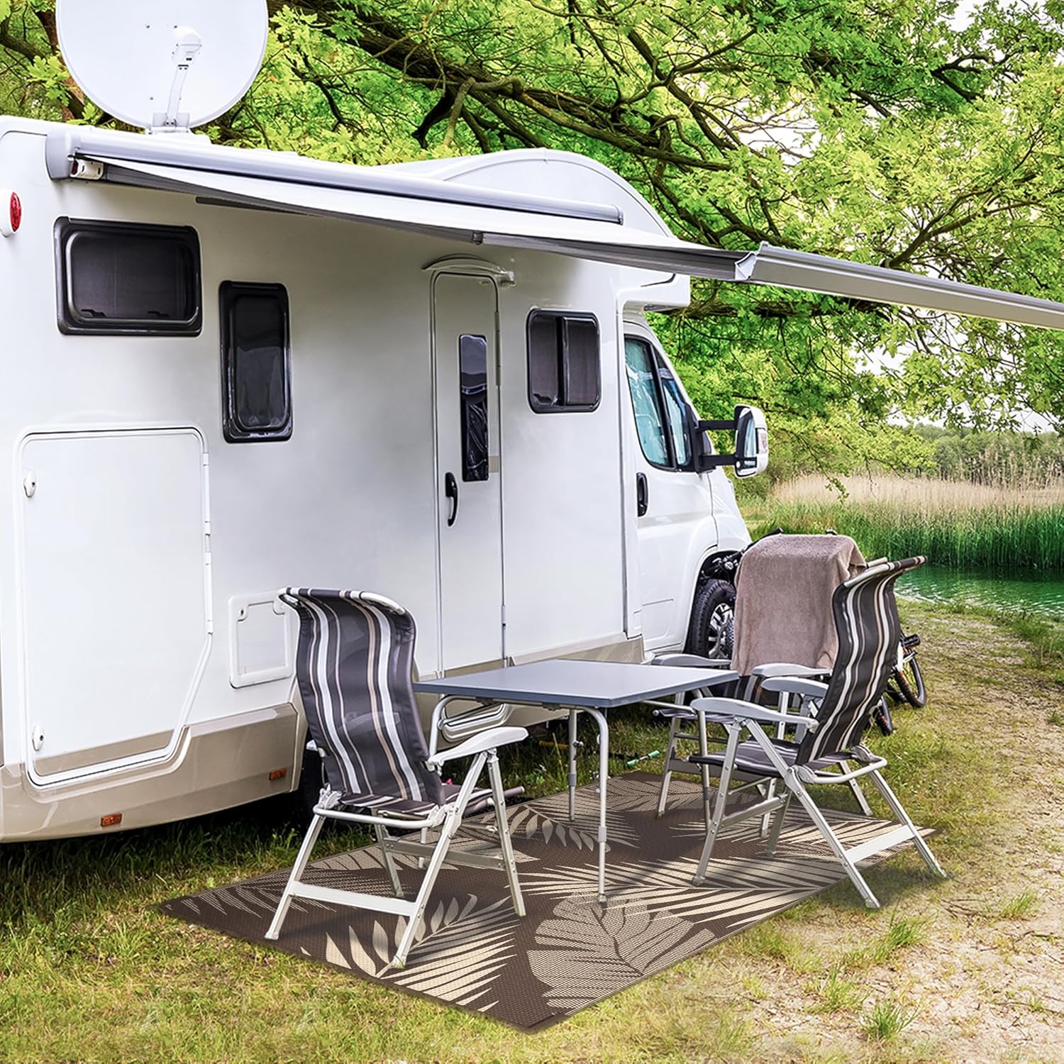 • Perfect Choice For RV Camping: Woven from lightweight plastic straws, these RV outdoor rugs fold compactly to fit in the included carry bag. This portable waterproof outdoor rug is easy to carry, with 4 corner loops and stakes to secure it. Using this camper rug reduces travel fatigue and adds plenty of space for fun β€” also a stylish touch for fall decor when setting up your campsite