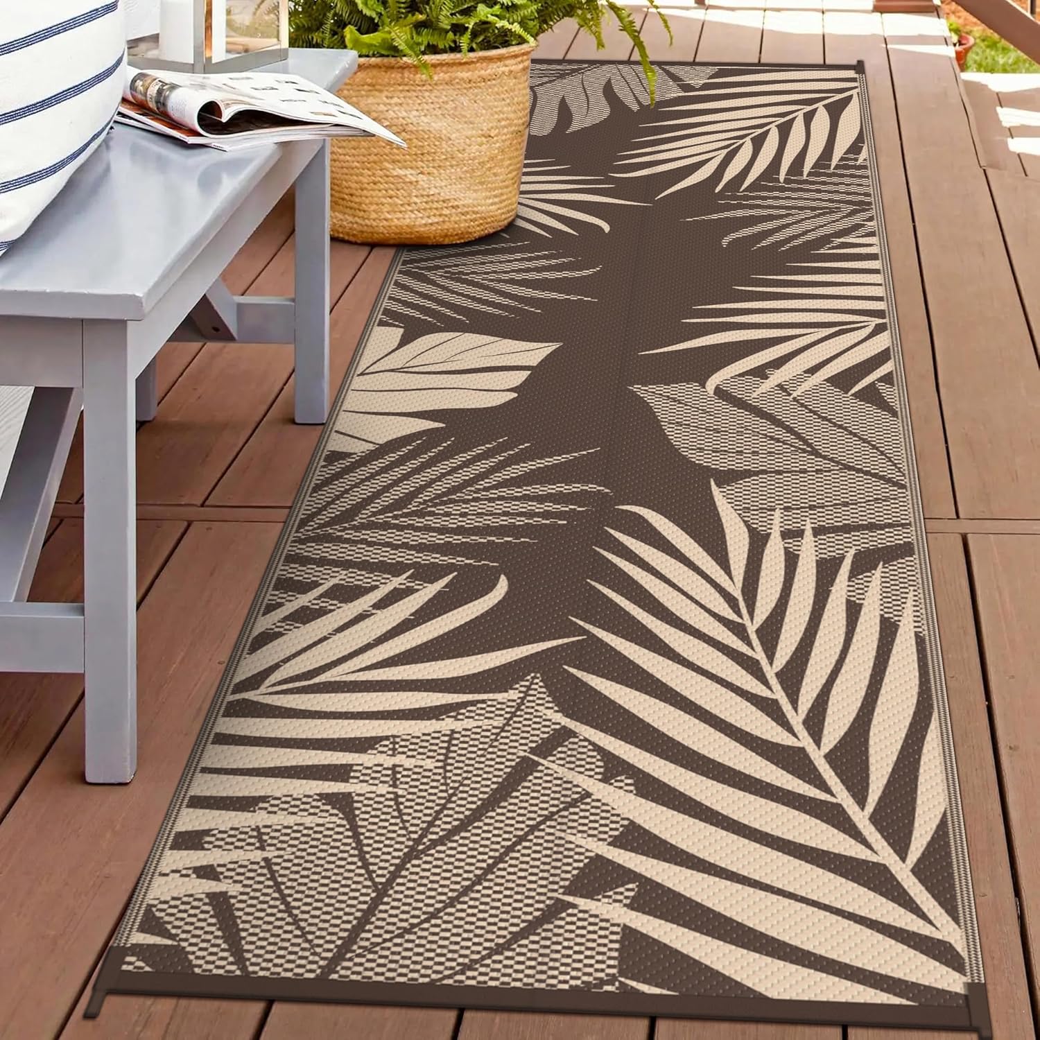 • Palm Leaf Design & Double-Sided Pattern: GENIMO reversible fall outdoor rug is designed with a double-sided pattern, completing the unique layout of multiple palm leaves. The 2 shades of coffee and beige achieve the ultimate fusion. Either side can blend perfectly with nature and look very full and comfortable, making it a versatile piece for fall decor