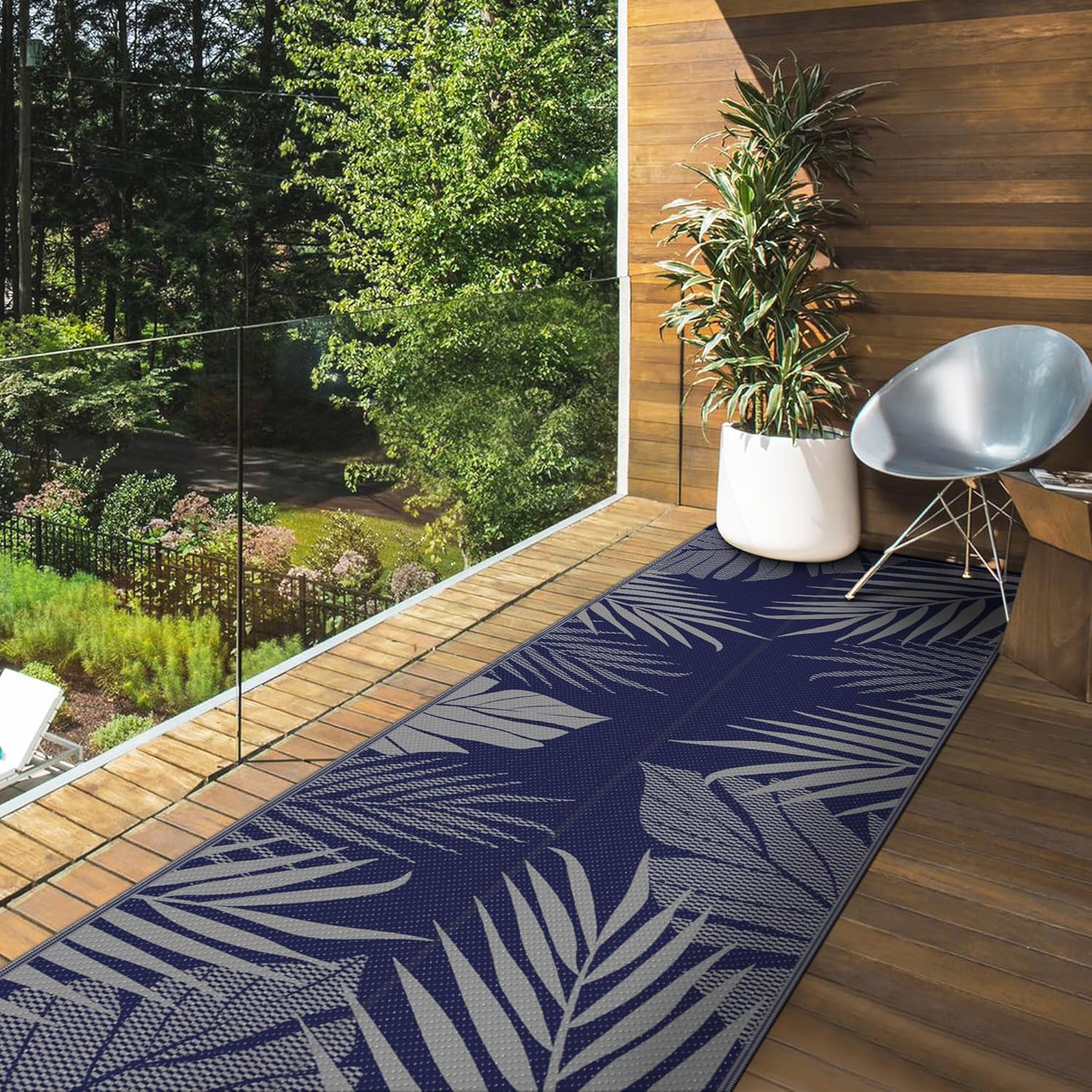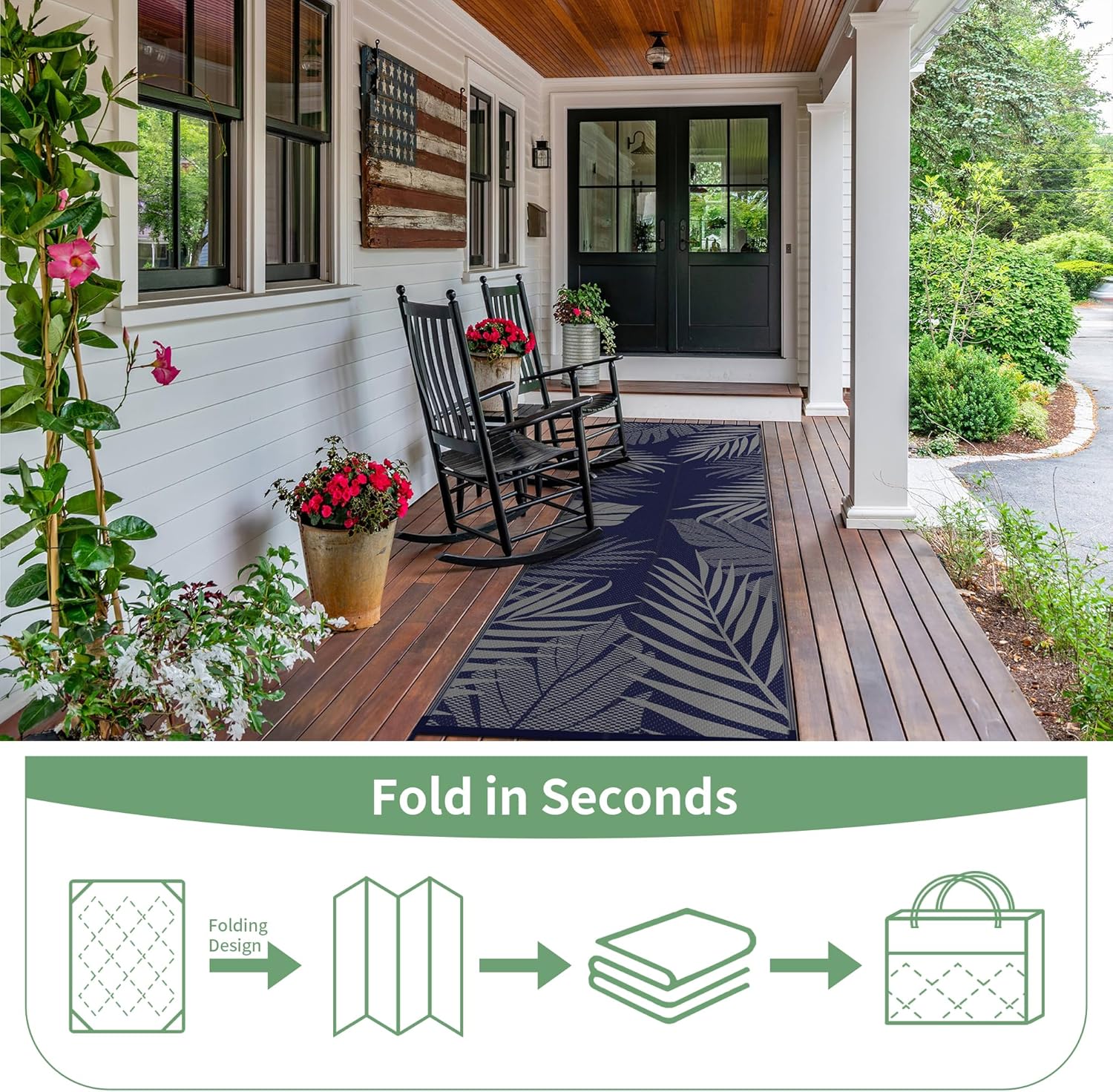 - Palm Leaf Design & Double-Sided Pattern: GENIMO reversible fall outdoor rug is designed with a double-sided pattern, completing the unique layout of multiple palm leaves. The 2 shades of blue and grey achieve the ultimate fusion. Either side can blend perfectly with nature and look very full and comfortable, making it a versatile piece for fall decor