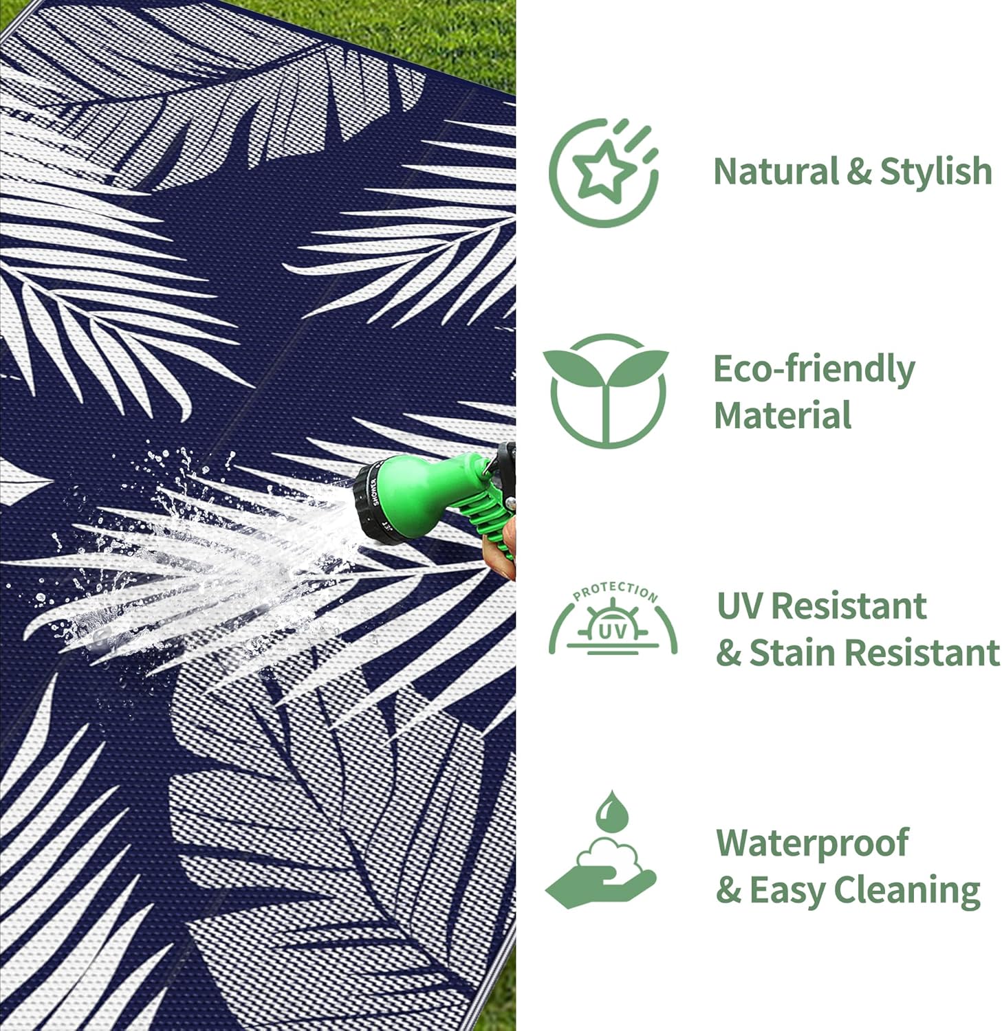 - Palm Leaf Design & Double-Sided Pattern: GENIMO reversible fall outdoor rug is designed with a double-sided pattern, completing the unique layout of multiple palm leaves. The 2 shades of navyblue and white achieve the ultimate fusion. Either side can blend perfectly with nature and look very full and comfortable, making it a versatile piece for fall decor