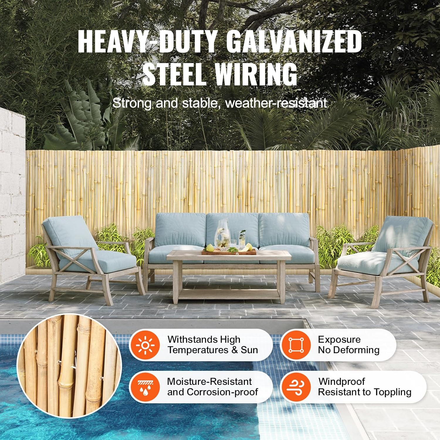 - Sturdy and Durable: Each bamboo panel piece is secured with heavy-duty galvanized steel wire, ensuring rust resistance and overall strength. The bamboo undergoes heat treatment to enhance its waterproof feature, extending its lifespan. Embrace green living!