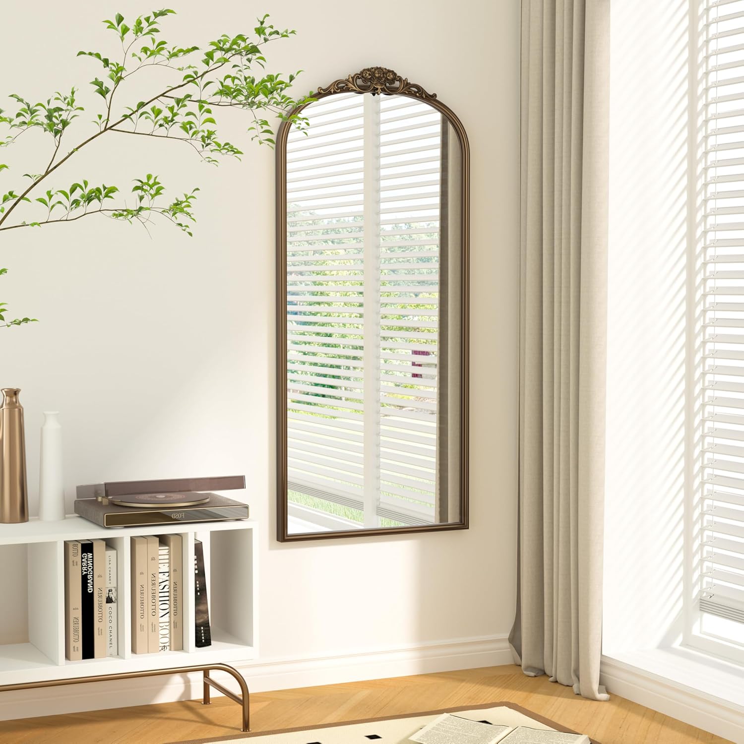 - 【Baroque-inspired Charm】 Keonjinn Antique Arched Mirror is a timeless piece designed to elevate your wall décor. Inspired by the opulence of the Baroque era, this mirror exudes historical charm with its graceful arched design and intricate wooden floral crown, creating a captivating focal point in any room.