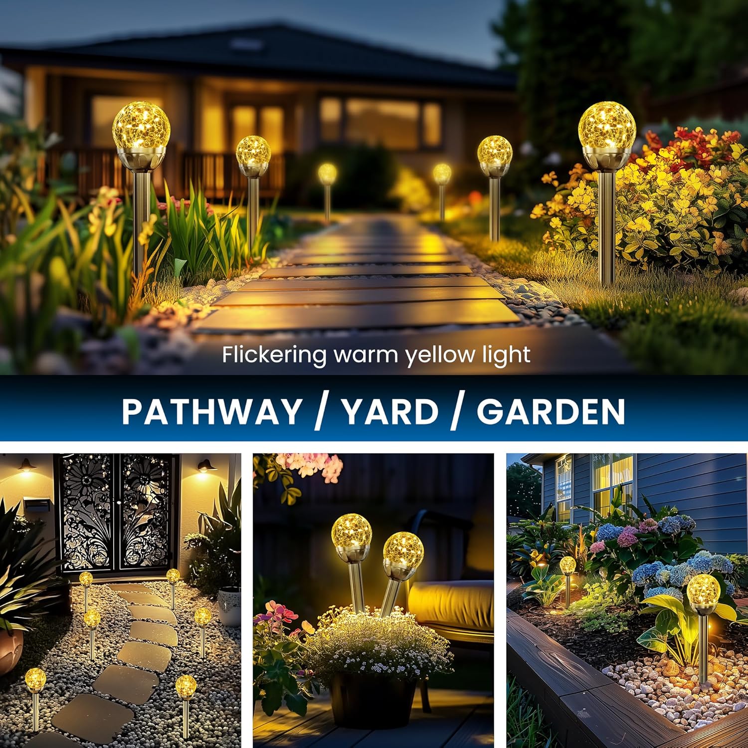 SOLPEX Solar Garden Lights String, 6 Pack Outdoor Christmas Decoration Warm White Solar Powered Cracked Glass Ball Lights, Waterproof for Patio Decoration