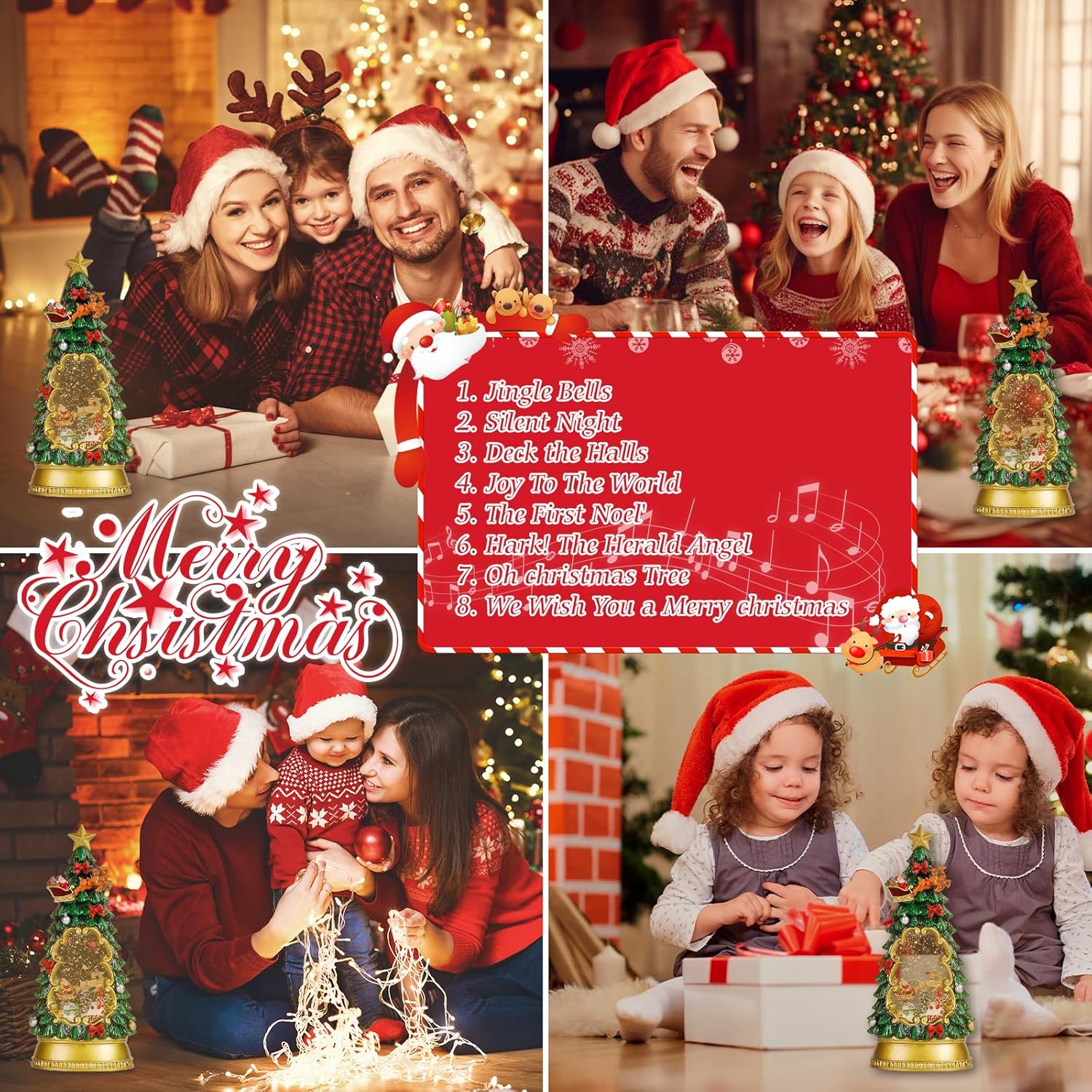 - Christmas Tree:With the Christmas tree as the inspiration design, the tree is hung with Santa Claus driving reindeer, accompanied by rotating snowflake effect, lifelike snowman and Santa Claus glittering inside the snow glboe, creating a festive joy and cozy atmosphere.