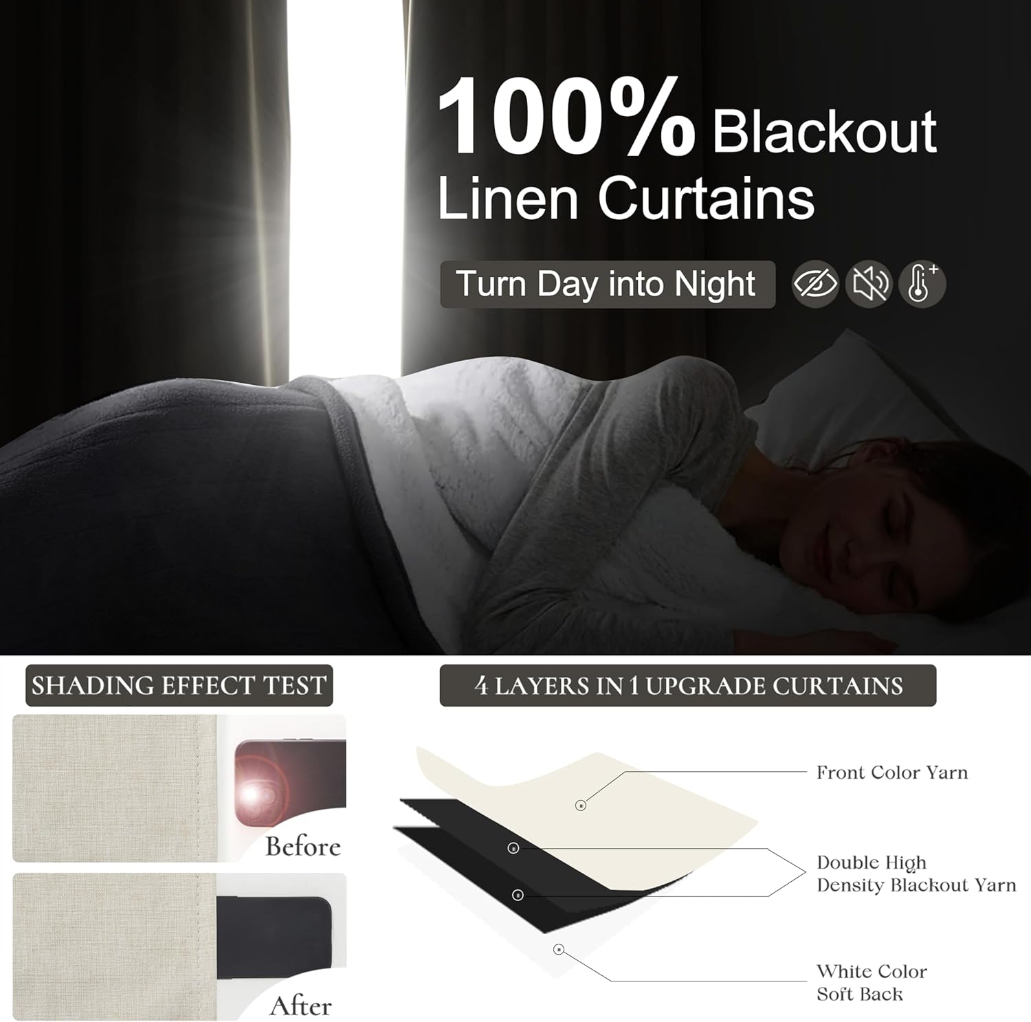 - Pinch Pleats Design:Each panel has 7 pleats.linen draperies are crafted from blended fabric(30%linen,70%polyester),drapes well and not easy-wrinkle.Suitable for various styles:modern,farmhouse,boho,neutral,bedroom,living room,nursery,sliding door,etc.