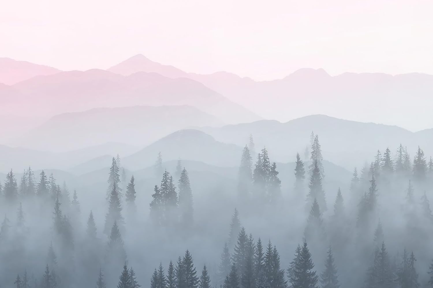 Misty Forest Mountains Nature Wallpaper for Interior Wall Decoration, Bathroom, Living Room, Bedroom Background Wall murals(Not Peel and Stick)