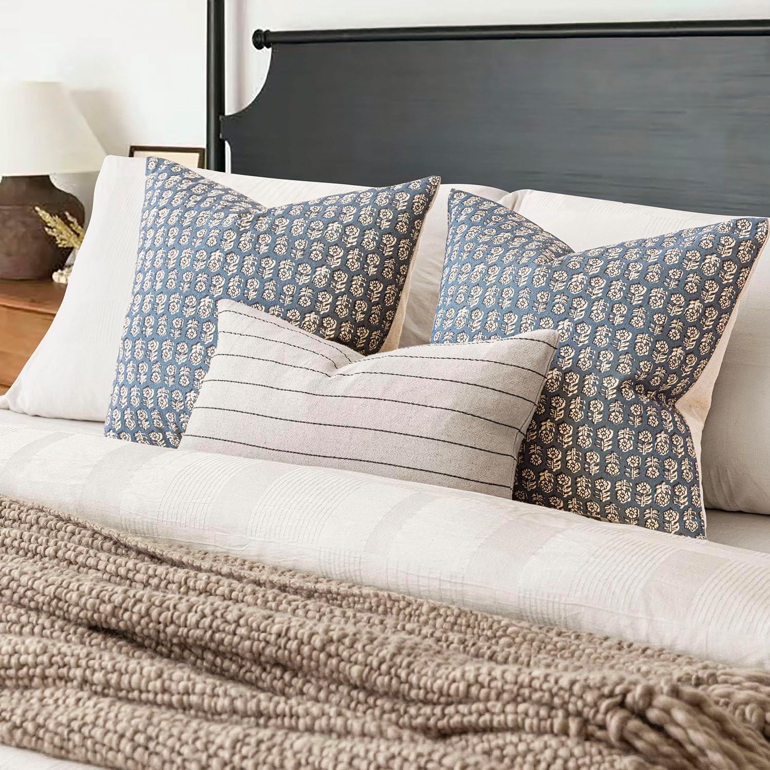 Foindtower Set of 2 Decorative Neutral Floral Print Throw Pillow Covers Vintage Accent Farmhouse Cushion Covers Boho Home Decor for Sofa Couch Chair Bedroom Living Room Outdoor,22×22 Inch,Dusty Blue