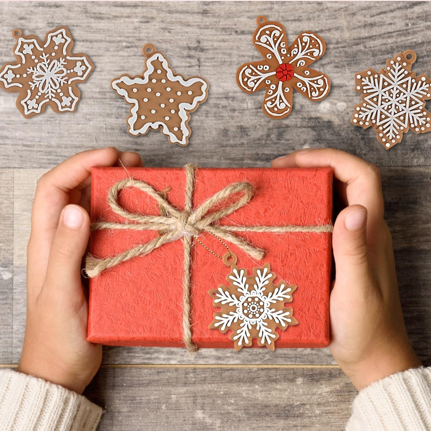 kockuu 12Pcs Christmas Gingerbread Snowflake Ornaments for Tree Rustic Brown Silicone Christmas Ginger Bread Hanging Ornaments Pendants for Xmas Tree Winter Crafts Holiday Home Party Decor Indoor