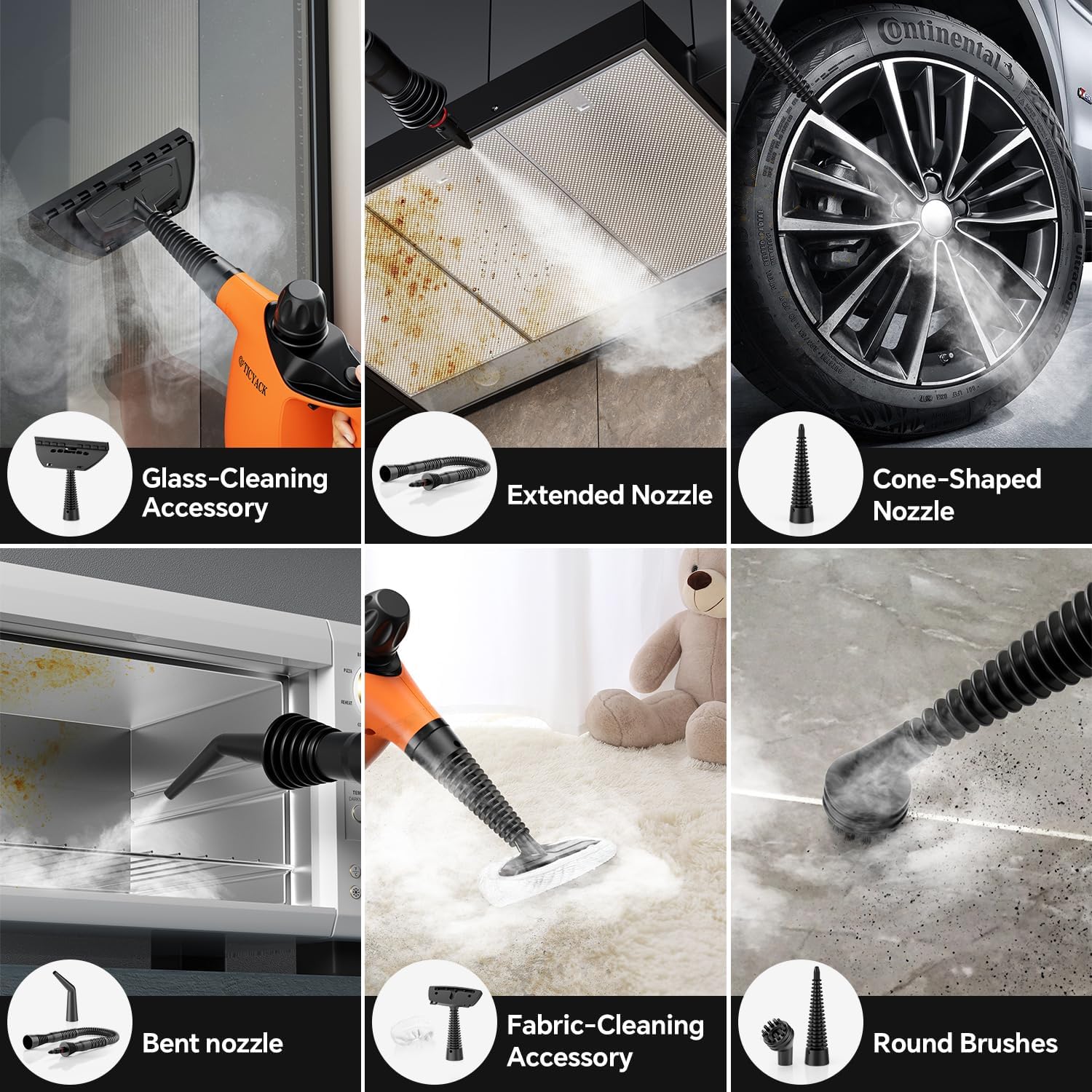 Handheld Steam Cleaner, Steam Cleaner with 16 PCS Accessory & Safety Lock, 500ML Large Capacity Natural Surface Steam for Cleaning, Multipurpose Steamer for Home, Car, Bathroom, Grease (Orange)