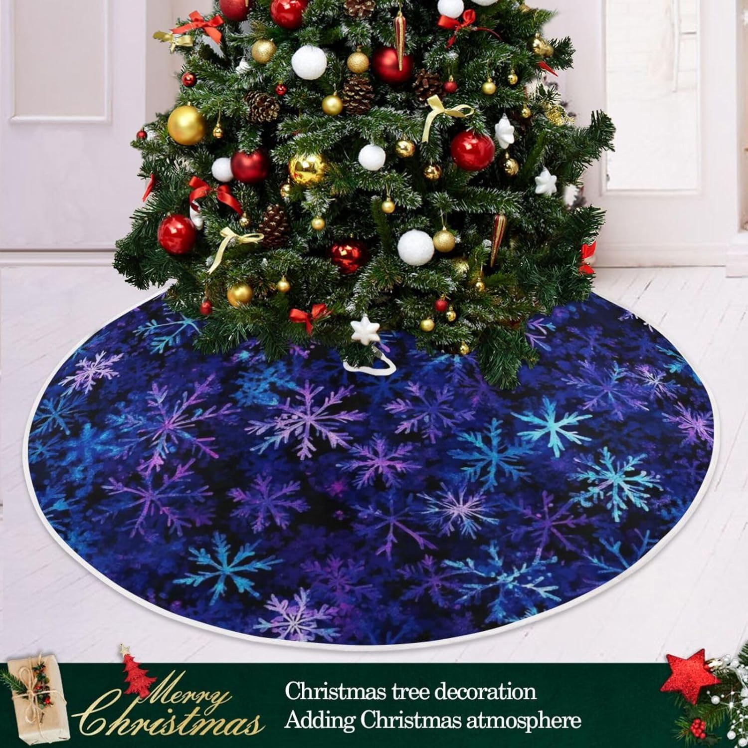 Christmas Blue Purple Snowflake Tree Skirt, Seasonal Tree Mat Holiday Party Supplies Ornaments Indoor Outdoor Decorations for Tabletop Trees 35.4 Inches