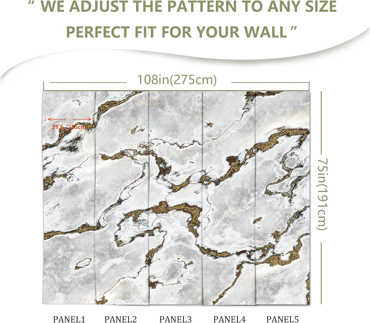 - MURAL SIZE - Approx.108"x75"(Wx H), This mural wallpaper cut into 5 strips. All is marked with number under each strip. You can put it in sequential order before you install it.