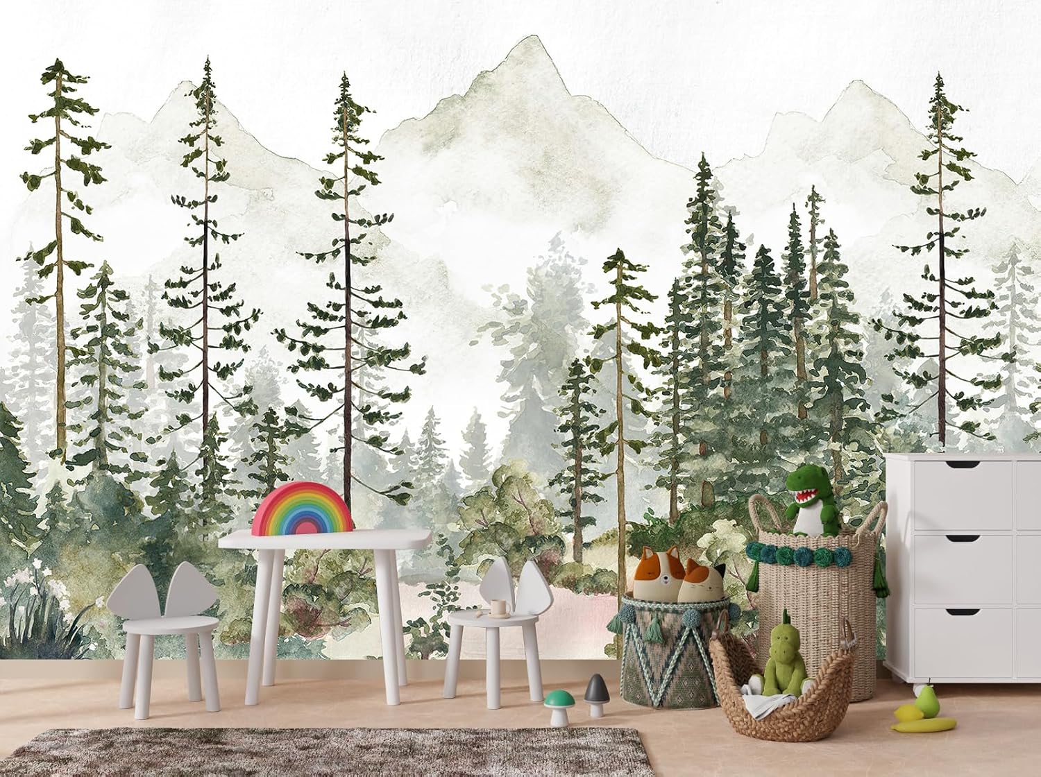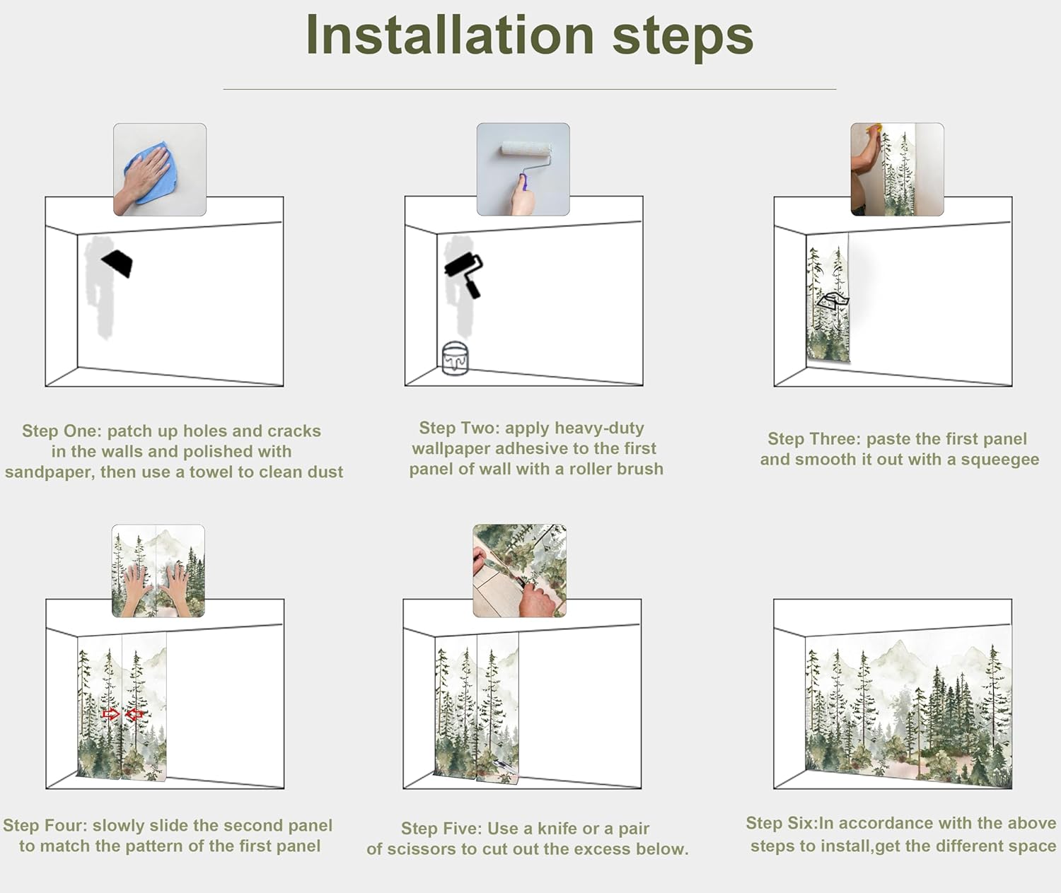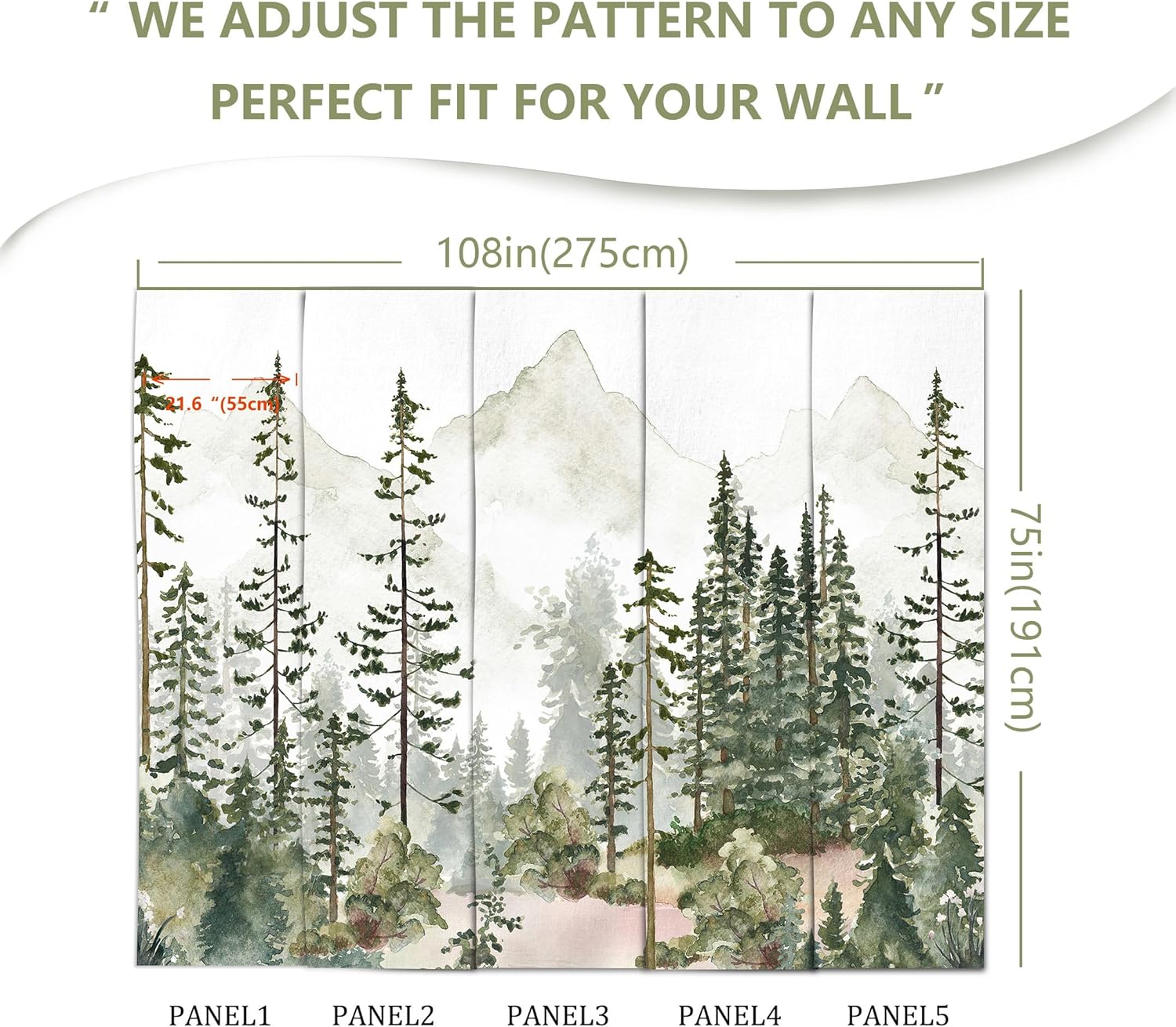 - MATERIAL - Green forest murals for walls is made of premium silk material. Ecological printing with lightfast, UV resistant lasting colors. Durable and waterproof, fadeless and odorless, non-toxic and eco-friendly.