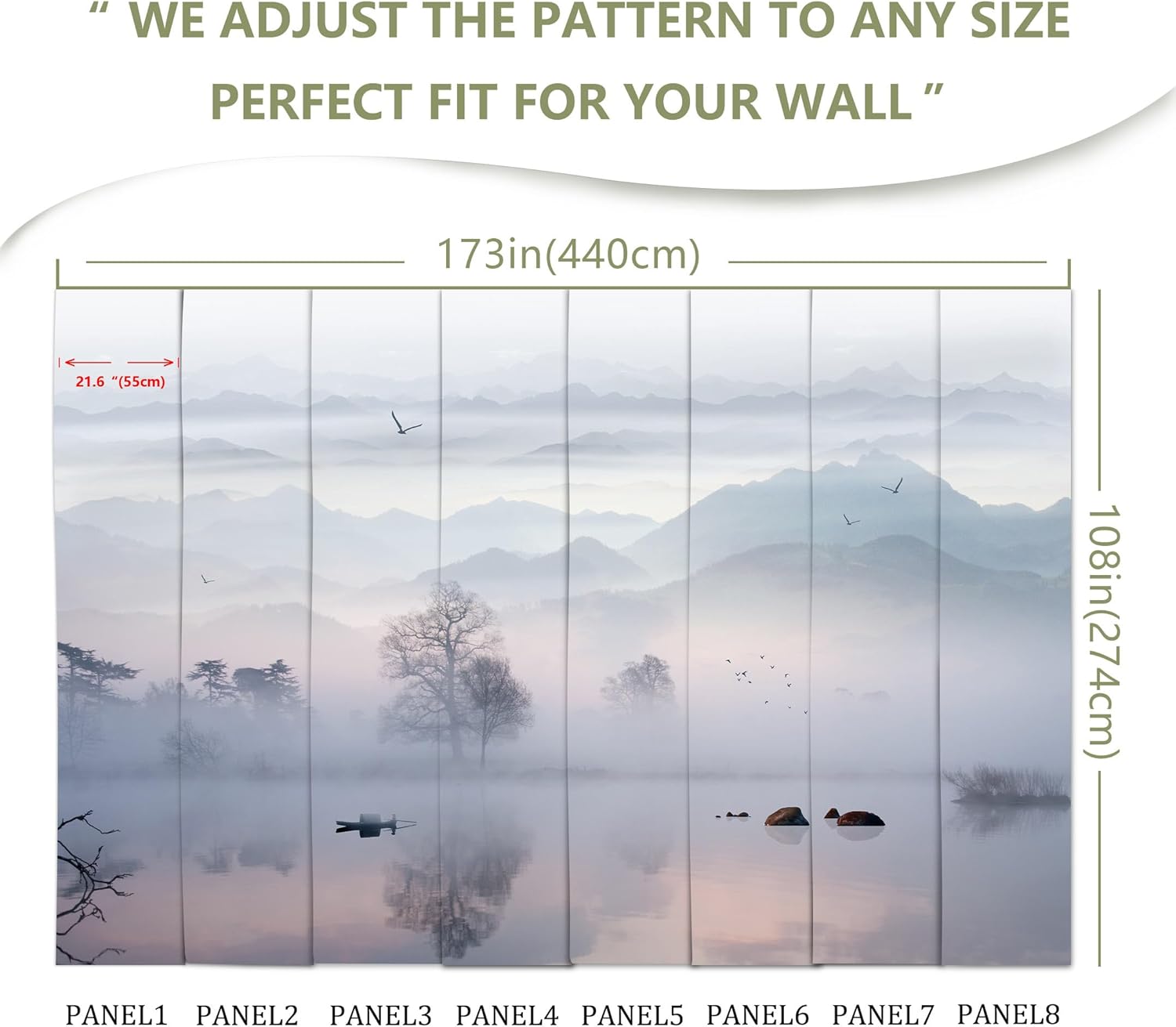 - MURAL SIZE - Approx.173"x108"(Wx H), This mural wallpaper cut into 8 strips. All is marked with number under each strip. You can put it in sequential order before you install it