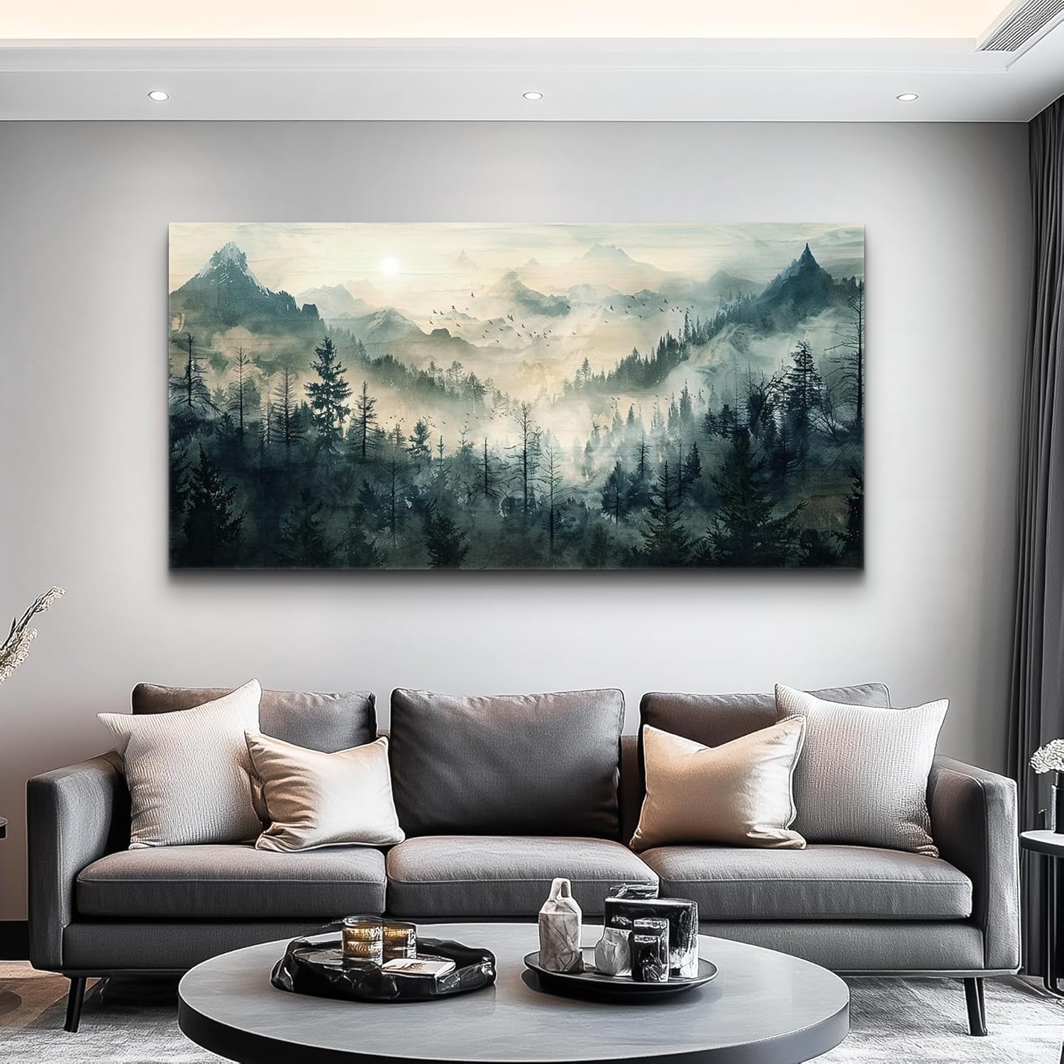 KELIYUAN Misty Forest Wall Art Home Decor Mountain View Large Canvas Wall Painting Nature Landscape Painting For Living Room Bedroom Office Modern Printed Artwork Can Be Hung Directly 24x48 Inches