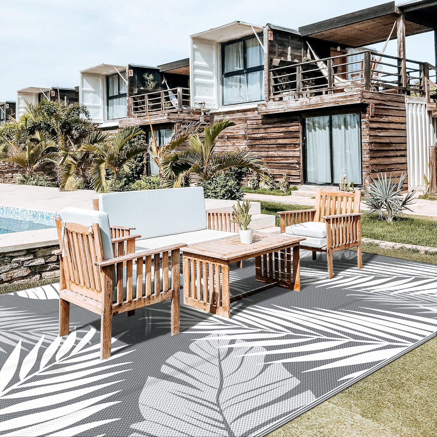 • Palm Leaf Design & Double-Sided Pattern: GENIMO reversible fall outdoor rug is designed with a double-sided pattern, completing the unique layout of multiple palm leaves. The 2 shades of grey and white achieve the ultimate fusion. Either side can blend perfectly with nature and look very full and comfortable, making it a versatile piece for fall decor