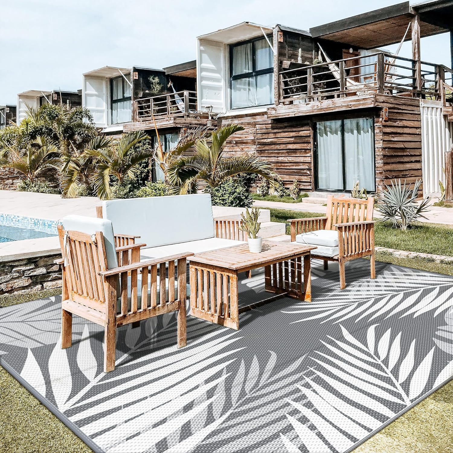 • Palm Leaf Design & Double-Sided Pattern: GENIMO reversible fall outdoor rug is designed with a double-sided pattern, completing the unique layout of multiple palm leaves. The 2 shades of grey and white achieve the ultimate fusion. Either side can blend perfectly with nature and look very full and comfortable, making it a versatile piece for fall decor